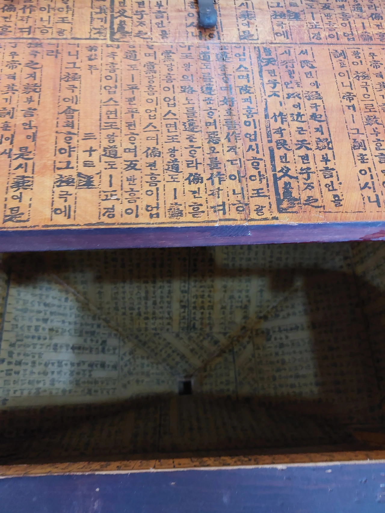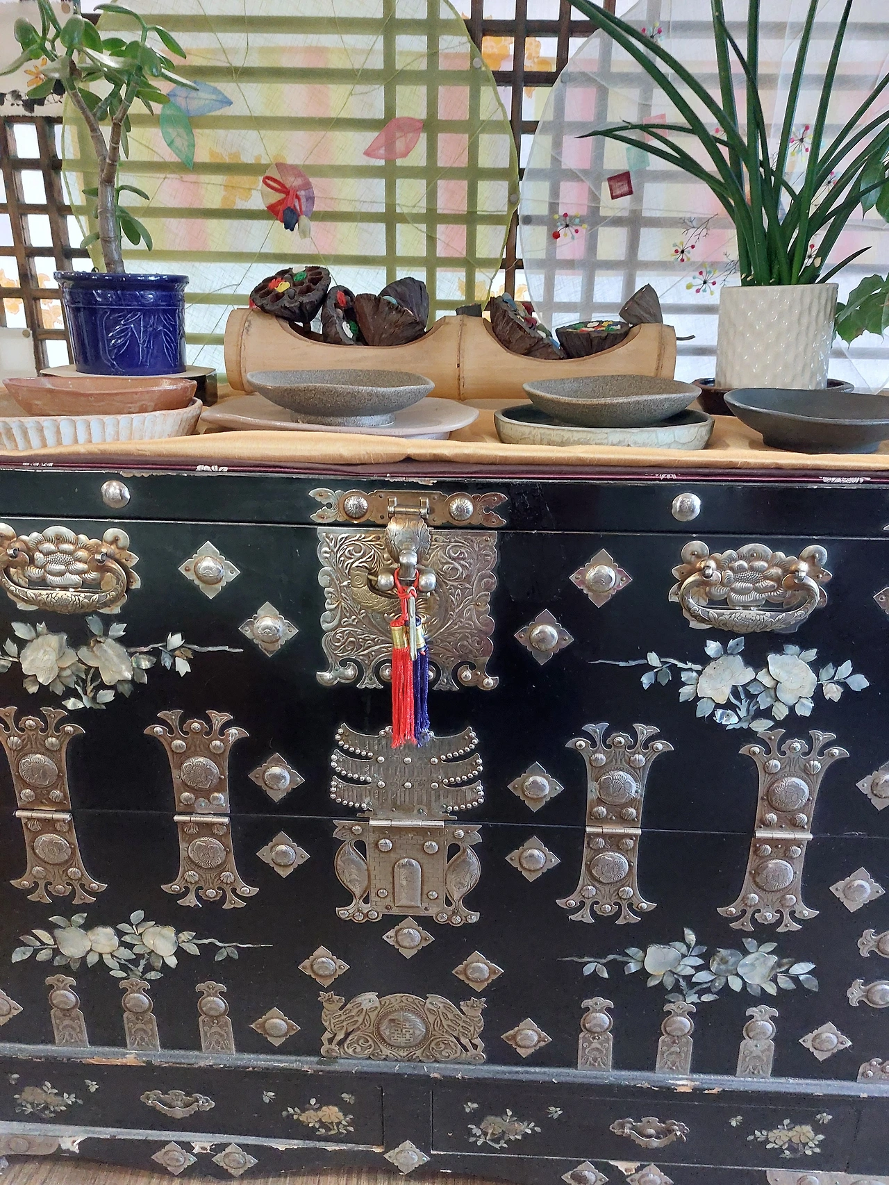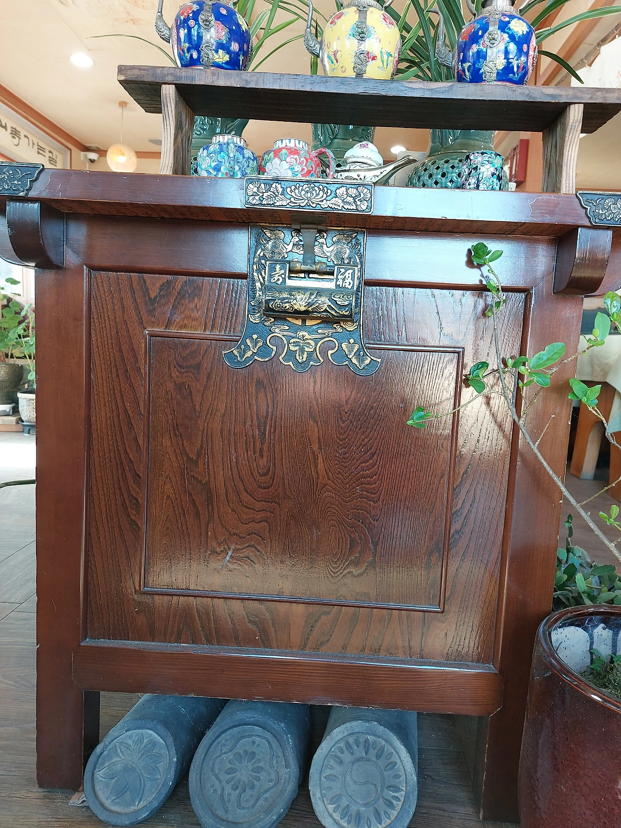 오동나무로 만들어진 뒤주와 화려한 장식의 문갑이다. 친정어머님이 시집오실 때 가져오신 물건들이다. 어머님 세상 떠나시고 버리기 아까워 가져왔다. 농부의 집안이라 쌀걱정은 별로 없었던 것으로 기억한다. 내 키 보다 높은 뒤주를 깨금발을 하고 간신히 열어젖혀서 두 손으로 쌀을 올렸다가 흘리는 장난질을 하며 놀았던 것 같다. 귀한 양식으로 장난친다고 부지깽이로 많이 얻어터지곤 했지만 오도독 씹히는 생쌀의 고소한 맛과 감촉의 기억이 지금도 생생하다. 지금은 오만가지 잡동사니를 넣어두는 용도로 사용한다