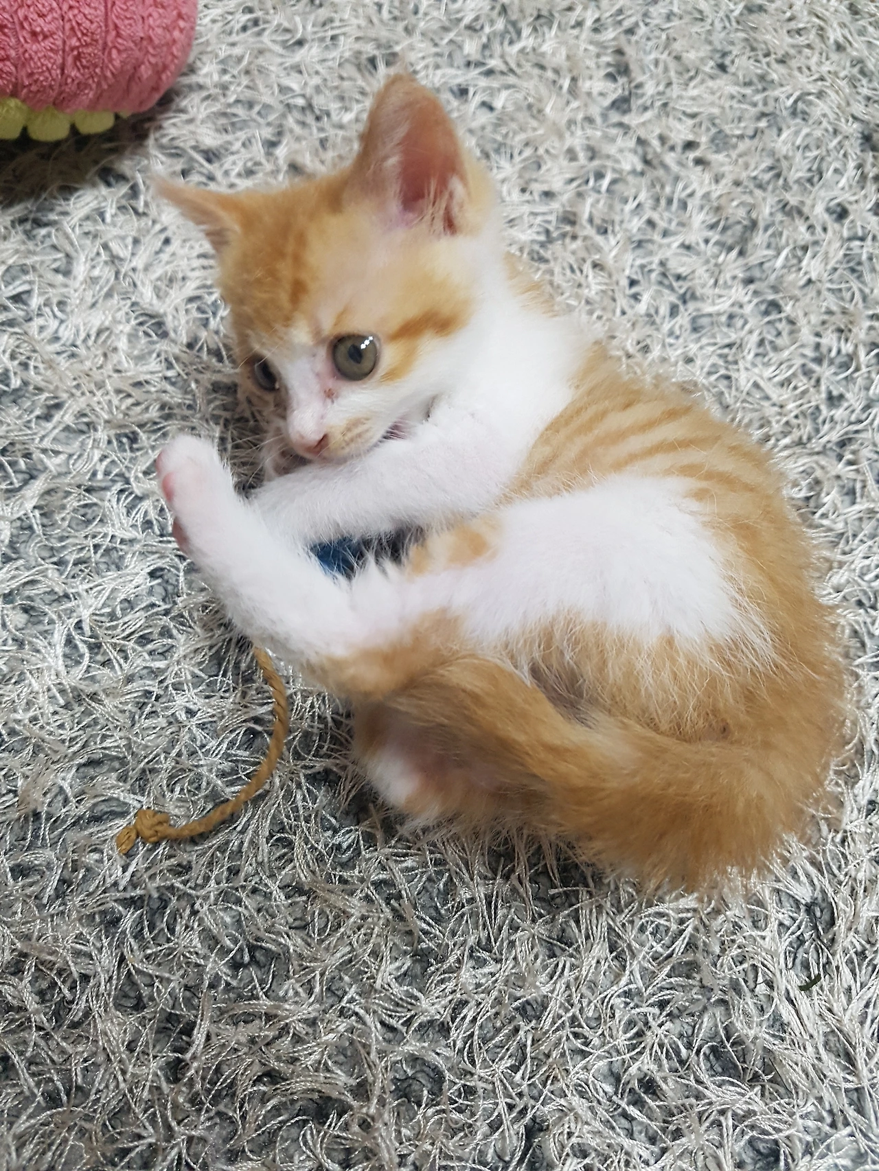 산북이는 산에서 진짜 북 치고 있었던 고양이는 아니고 첩첩산중, 단독으로 지어져 있는 농가주택 주변에서 발견된 아깽이다. 강원도에 있는 '산북리'라는 지번인데 하늘에서 뚝 떨어진 것처럼 어미나 형제도 없이 발견되어 언니 집사를 깜짝 놀라게 했다.