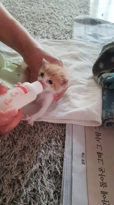 "울 산북이 가 화장실 앞에서 야옹 거리드라. 저 꼬물이가 나를 지 엄마로 아는가 봐. 졸졸 따라 다니다가 꽈당 넘어진거야. 바둥거리는데 넘 귀여워서 배꼽 빠지게 웃었어. 울 산북이랑 있으니 안 적적해. 울 산북이 가 조금 전에는.. 산북이 가.."