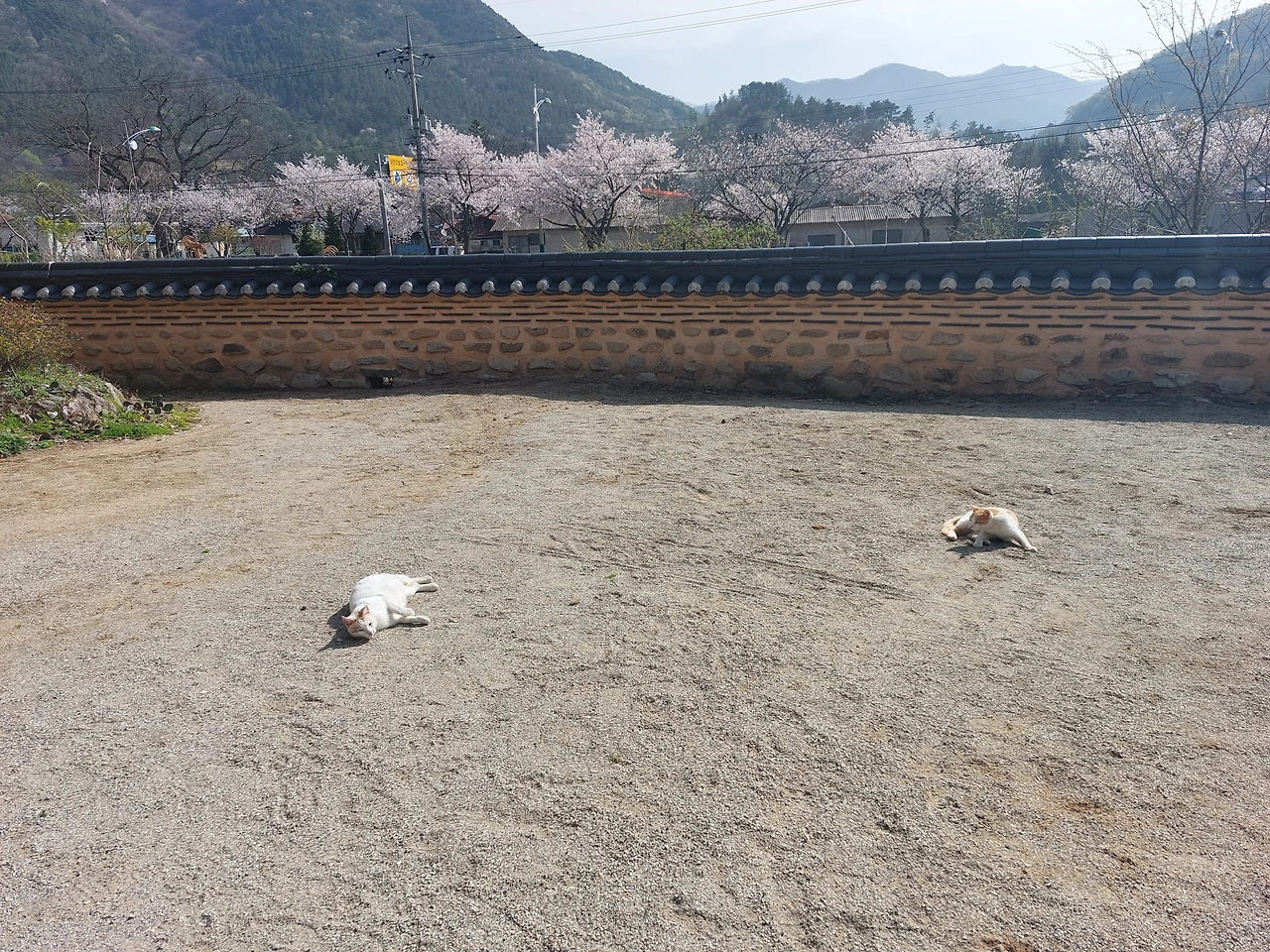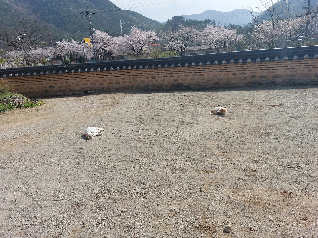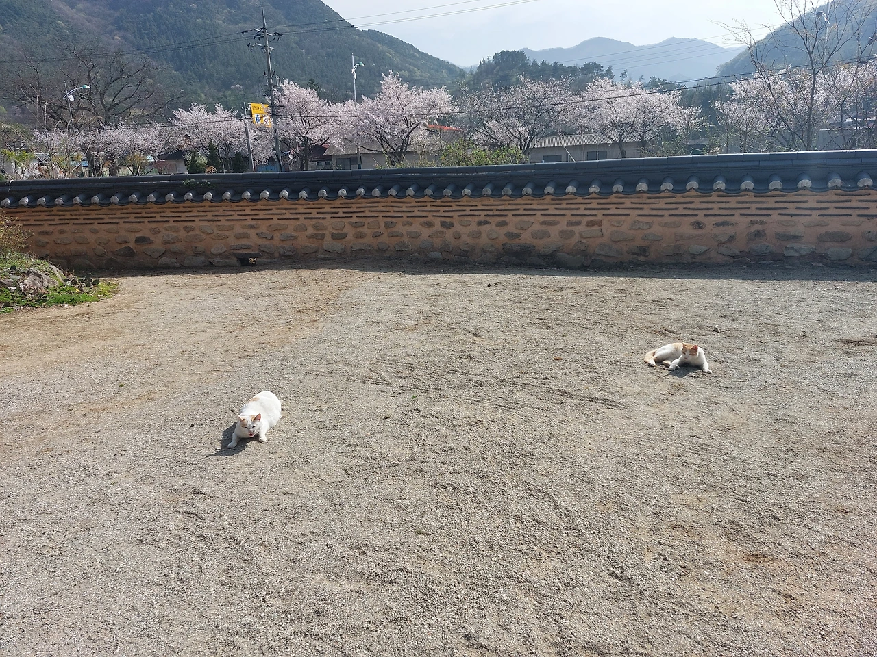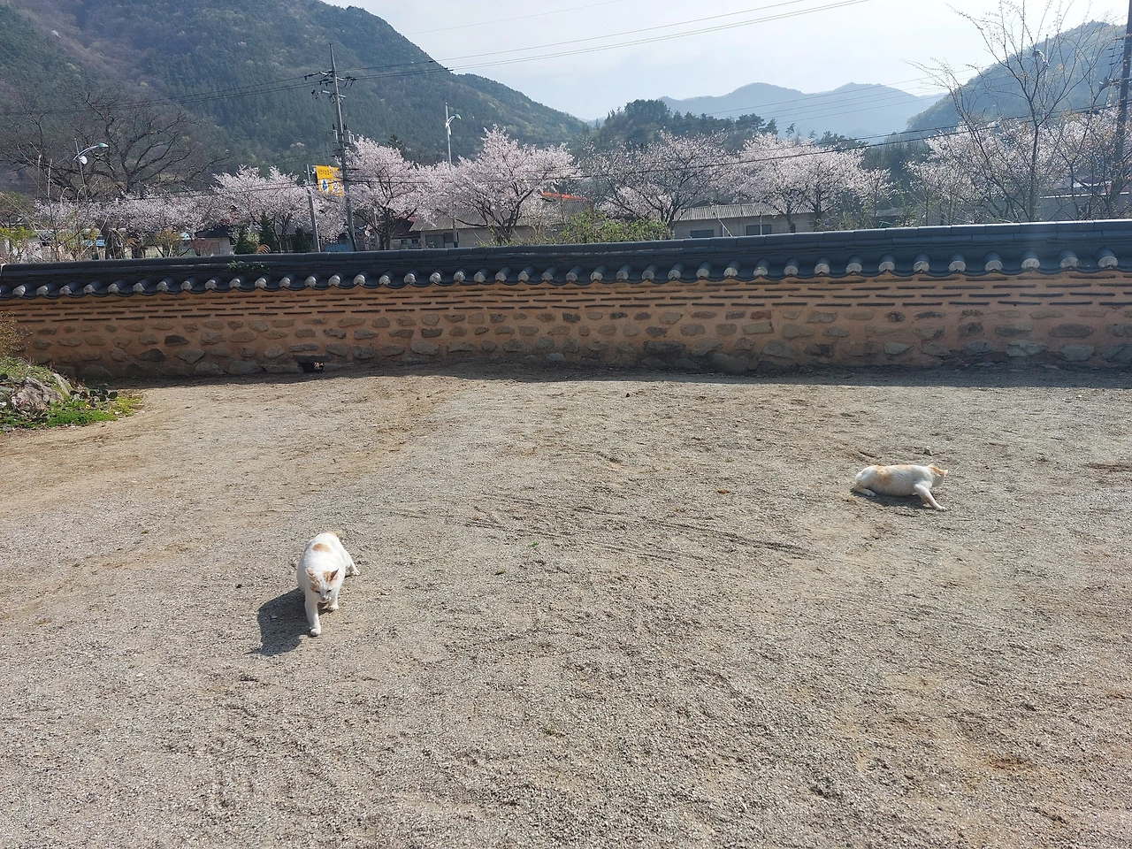 벚꽃이 만발한 산사에 고양이들도 벙글벙글 피어납니다.