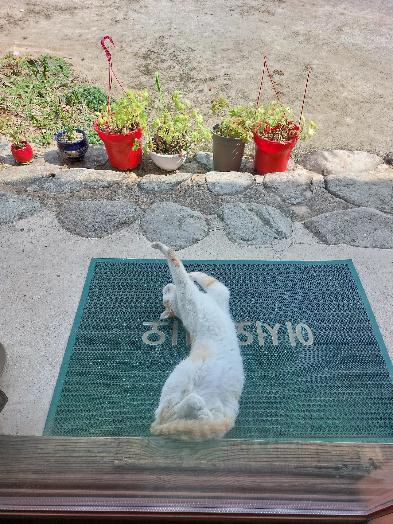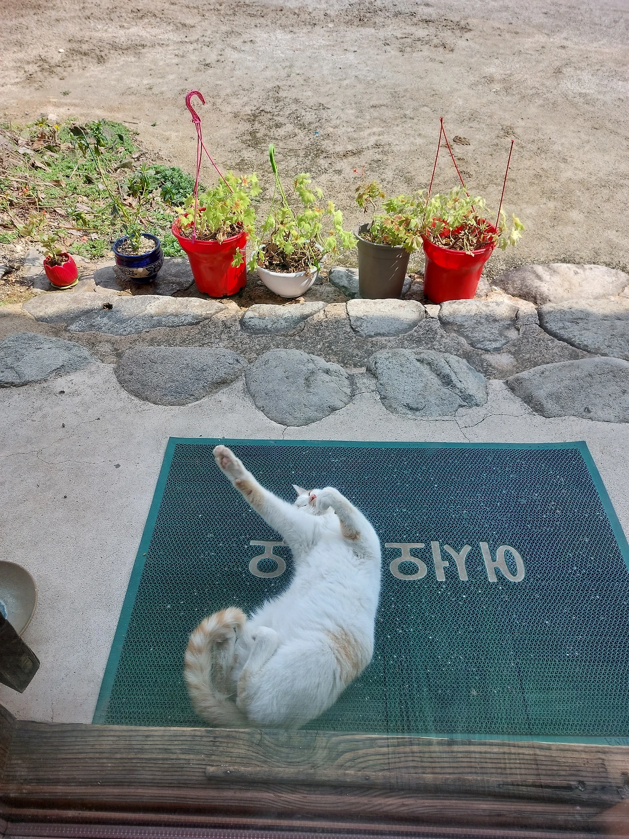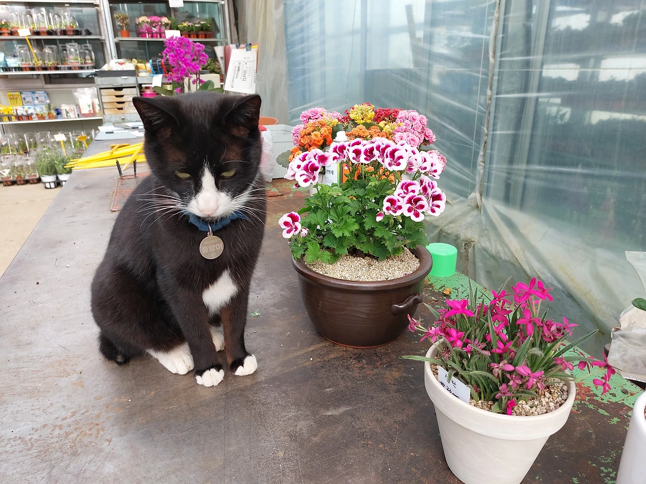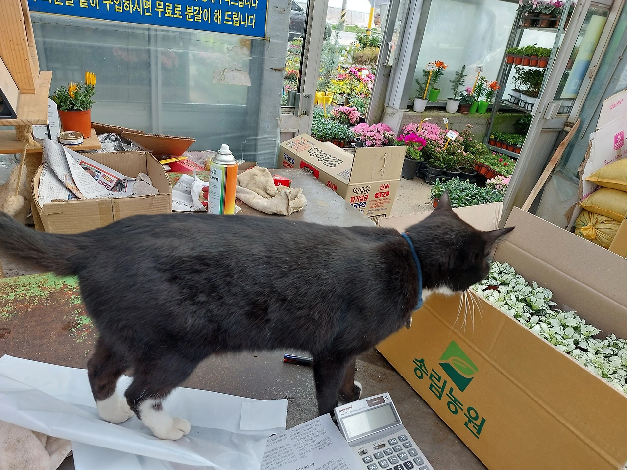 자주 들르는 꽃집의 고양이가 아주 번지르르합니다. 한 칼스마하는 것 같습니다. 엄청 큰 대장고양인데 꼬리가 뭉툭합니다.