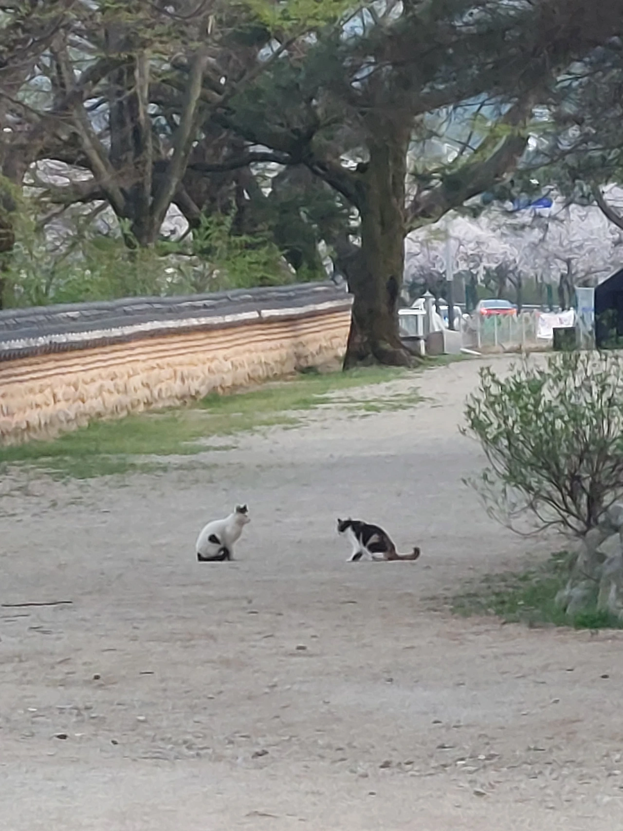 그냥 벚꽃보다는 고양이가 배경으로 있어야 더더욱 아름답습니다.