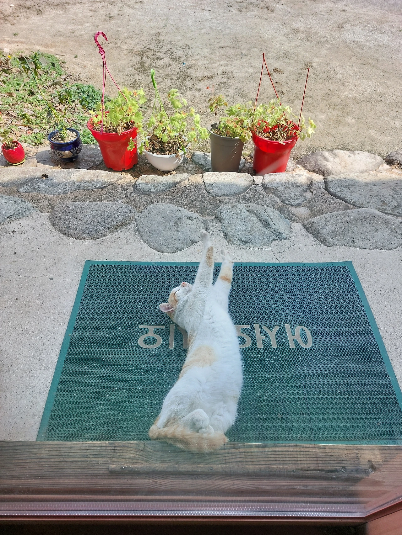 맨날 시간 좀 내달라, 맛난 거 사 줄 테니 먹으러 가자고 졸라대서 고양이 때문에 안된다고 핑계를 댔더니 농담인지, 진담인지 저렇게 사랑 고픈 아이처럼 떼를 씁니다.