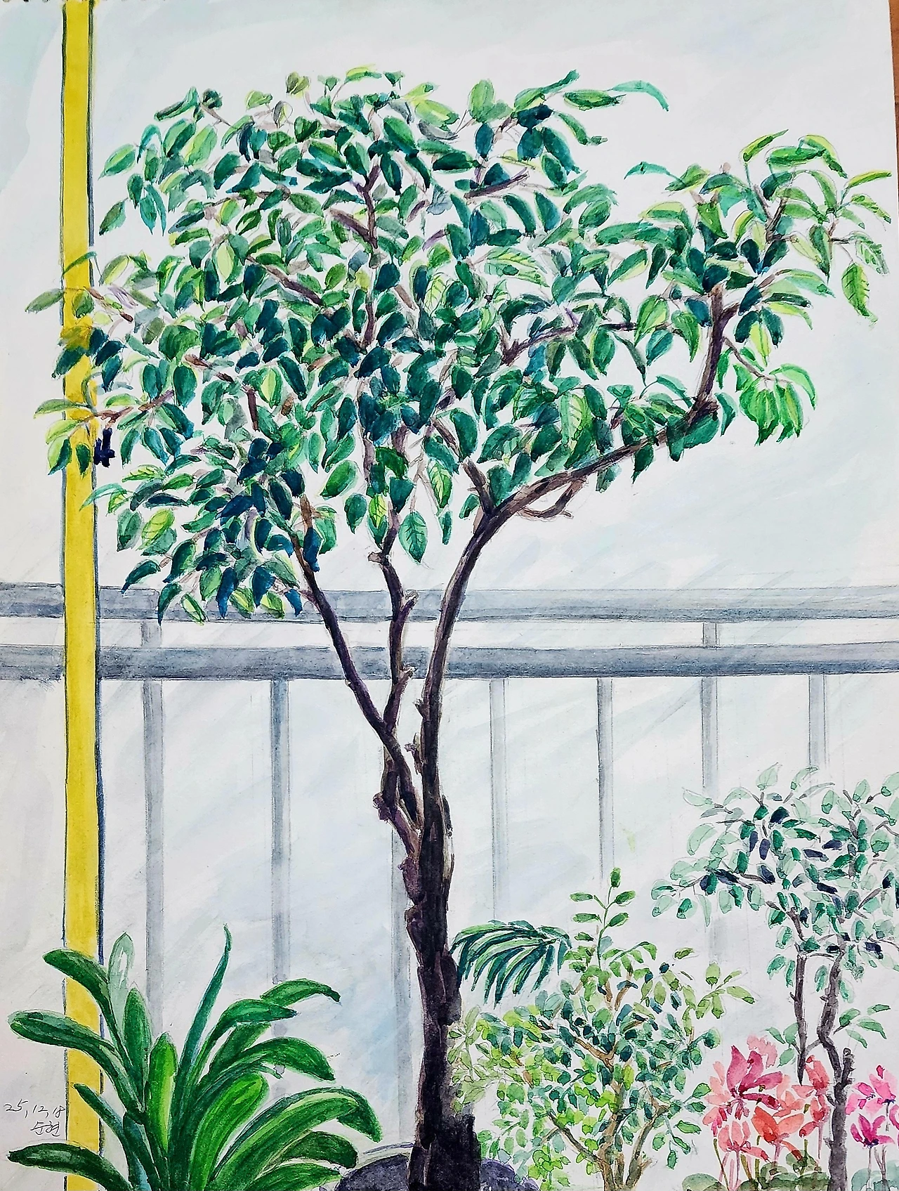 위 그림을 '남편의 정원'이라 제목 달았다. 작년 11월부터 8절 켄트지에 수채화로 그림을 그리고 있다. 여기에 삽화로 쓰일지는 몰랐다.