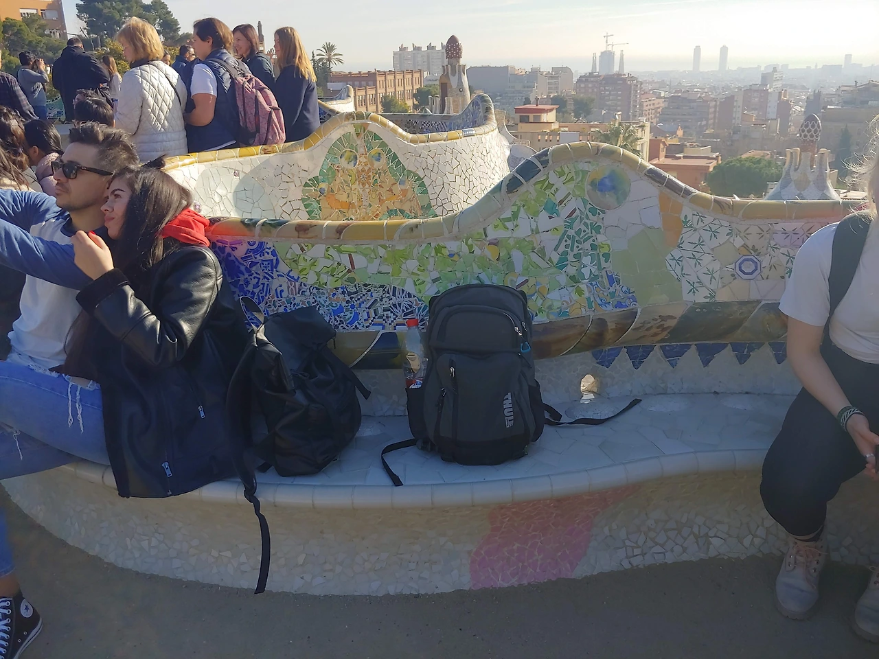 축구장만 한 광장에 놓인 구불구불한 의자들. 사진으로만 보던 가우디 작품의 진면목을 확인하려던 순간이었다. 화려한 타일을 깨뜨려 붙인 트렌카디스 기법의 물결무늬 의자는 분명 구엘 공원의 상징다웠다. 드디어 실물을 마주했다는 희열이 차올랐지만, 솔직히 아주 짧은 실망감이 스친 것도 사실이다. 마치 경주에서 첨성대를 처음 보았을 때처럼, 너무 거대하게 부풀려진 기대가 실제의 소박함에 부딪힌 모양이다