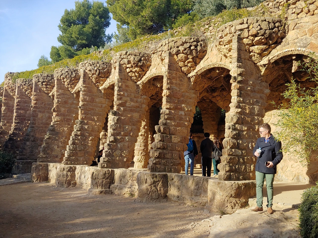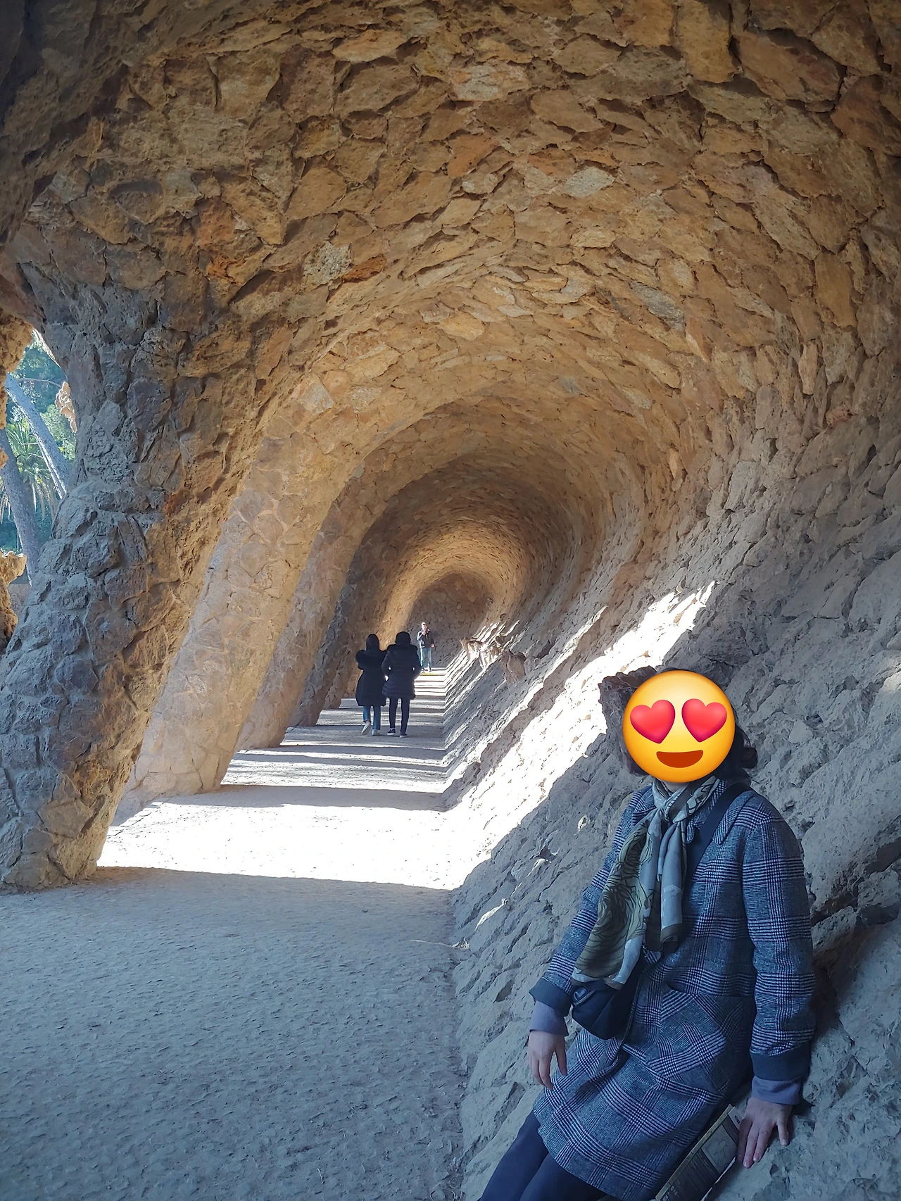 가우디는 공원을 조성할 때 산의 경사를 깎아내는 대신, 지형을 그대로 살리기 위해 돌을 쌓아 올린 통로를 만들었다. 마치 자연적으로 생성된 동굴처럼 보이지만, 실제로는 치밀하게 계산된 구조물이다.