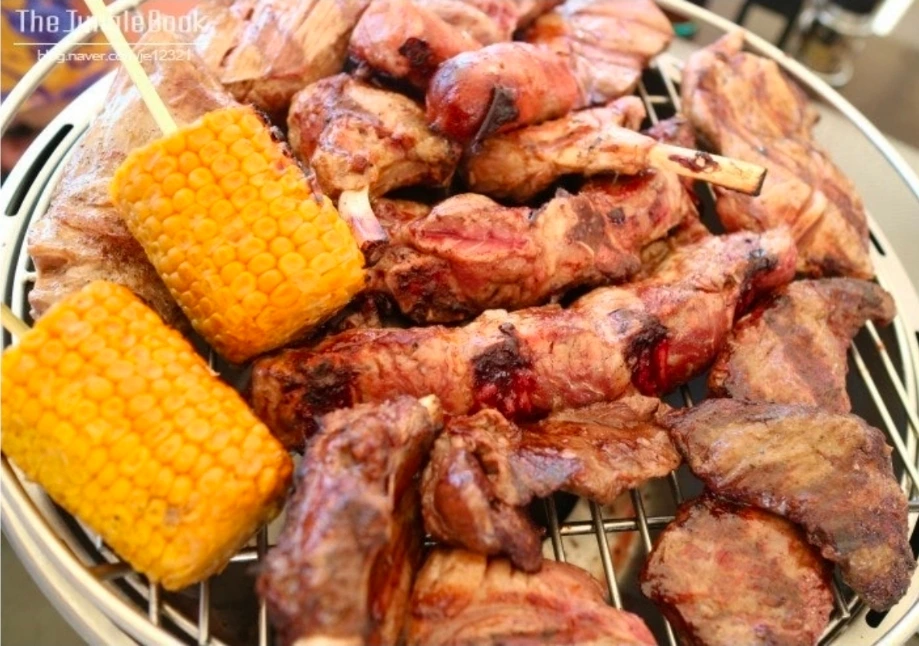 네 명의 시선이 바비큐 세트 메뉴판에 머물렀다. 치밀하게 계산하고 연구한 끝에 '2세트면 충분하겠다'는 결론을 내리고 주문을 마쳤다. 하지만 잠시 후 테이블에 놓인 고기 더미는 우리가 상상한 양의 정확히 두 배였다.