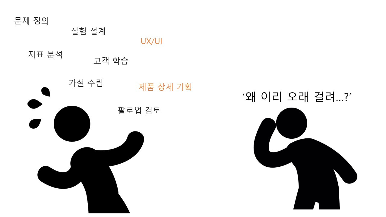 이후 다행히도 서비스 기획과 PM을 혼용해서 사용하는 팀이 아닌, 가설 검증, 실험 설계에 대한 역량과 역할을 더 중요시하는 팀에 합류하였다.