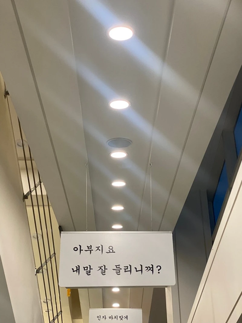 한 번은 고향 한 대형마트를 들렸다가 에스컬레이터를 타고 다음 층으로 가는 길, 천장에 붙은 이 광고를 보고 한참을 웃었던 기억이 납니다. 지역 주민이라면 누구나 아는, 지역 사투리의 특성을 잘 살린 광고 문구가 참 신선하고 재미있게 다가왔는데요. 센스 있어 보이는 보청기 브랜드 이름에도 한 번 더 눈이 갔던 기억이 있습니다.