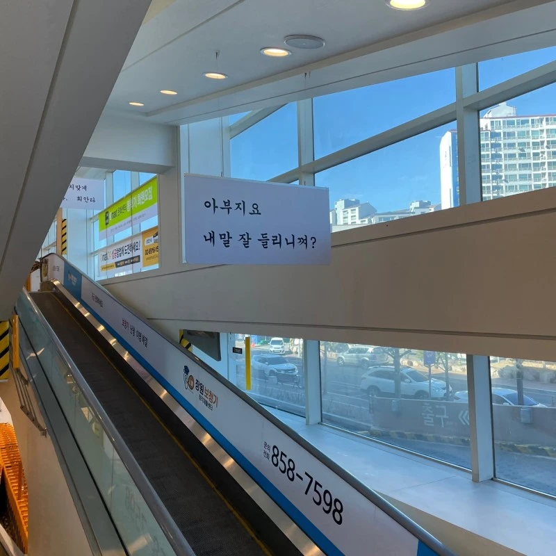 이미지를 보시면 에스컬레이터 옆에 보청기 브랜드의 이름과 번호가 나와있죠?