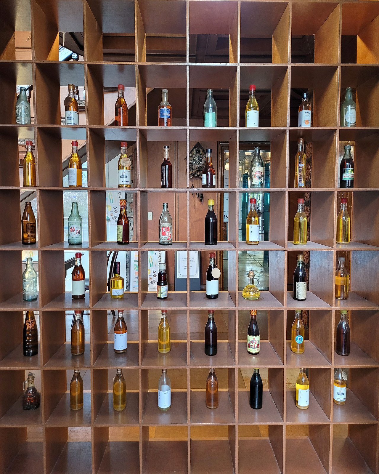굳이 카페이름을 방앗간으로 지은 이유가 뭘까? 의문이 들며 입구에 들어서는 순간 정답처럼 정면에 온갖 참기름 병들이 고소한 냄새와 함께 장식되어 있다. 커피 냄새가 아니라 참기름 냄새가 진동을 한다.
