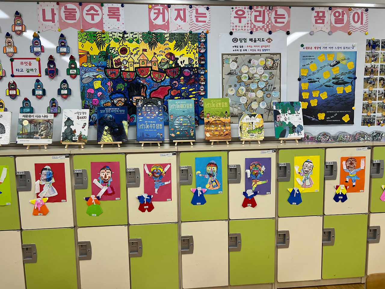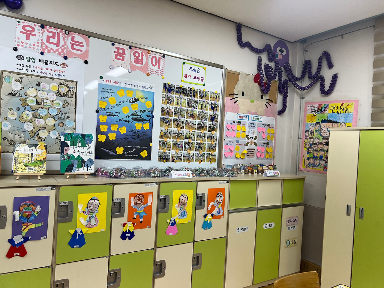 아이들은 그동안 배운 창작동요와 율동을 열심히 했다. 심사위원들은 1학년을 귀엽게 바라보셨고, 아이들이 그동안 만들어놓은 그림책 및 결과물을 꼼꼼하게 확인하셨다. 드디어 수업을 시작했다. 아이들은 그 어느 때보다도 초롱초롱한 눈빛으로 나를 바라봐 주었다. 정말 고맙게도 말이다. 바닷속 간접체험, 탐험 세상에 도착했을 때의 모습을 친구와 정지장면 만들기, 탐험 세상에 도착했을 때의 모습을 모둠별로 즉흥극 만들기 활동을 이어나갔다. 9시 40분부터 10시 30분까지 50분동안 화장실에 가지 않고, 친구들까지 싸우지 않고 수업에 임하는 것만으로도 정말 다행이라고 생각했다. 훌륭한 수업은 아이들이 70%이상의 말을 하고 교사는 30%이하의 말을 하는 수업이라고 하였다. 그것만 들자면 난 훌륭한 수업을 한 것이다. 혼자 잘하고 있어. 괜찮아를 외치며 40분 수업을 마무리하였다.