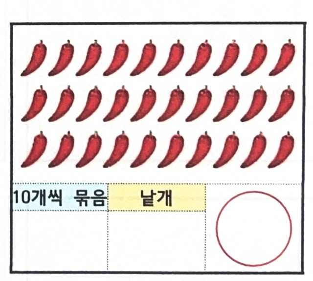 학습지에 고추 그림이 30개 있었다.