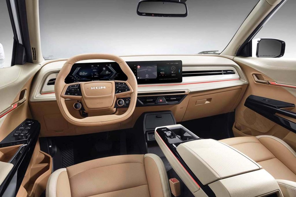 인테리어 디자인은 KGM의 디자인 철학 Powered by Toughness를 바탕으로 한 ‘스타일리시&다이내믹’ 외관 스타일에 맞춰, 와이드한 공간감과 심플한 수평형 레이아웃을 사용했다. 특히 운전에 집중할 수 있는 Slim&Wide(슬림&와이드) 콘셉트의 인체공학적 설계에 고급스러움과 하이테크 감성을 더해 완성했다.