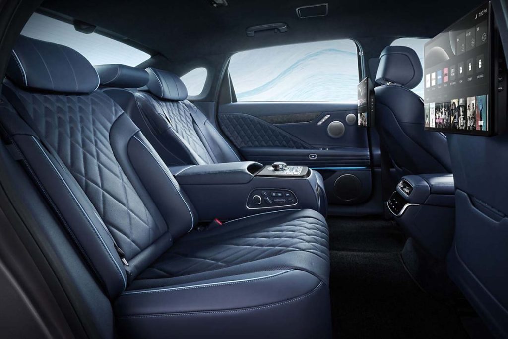 가장 큰 특징은 길어진 휠베이스다. 휠베이스는 기존 내연기관 모델과 비교해서 130mm 늘어난 3,140mm다. 휠베이스가 대폭 늘어난 덕분에 2열 레그룸 공간이 넓어졌으며, 2열 전동 리클라이닝 시트, 에르고 모션 시트, 이지 클로즈 시스템 등 2열 승객을 위한 다양한 고급 및 편의 사양을 제공한다.