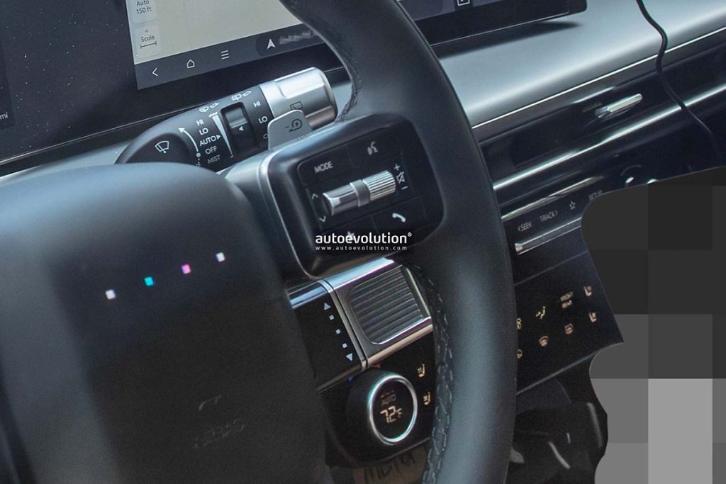 해외에서 테스트 중 포착된 아이오닉 9의 실내는 최신 현대차 디자인을 기반으로 인터렉션 픽셀 램프가 적용된 신형 스티어링 휠과 12.3인치 디스플레이 두 개를 나란히 배치한 와이드 디스플레이가 대표적이다.