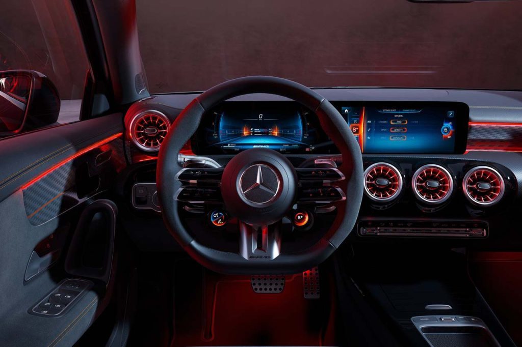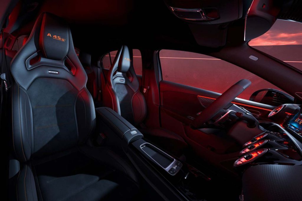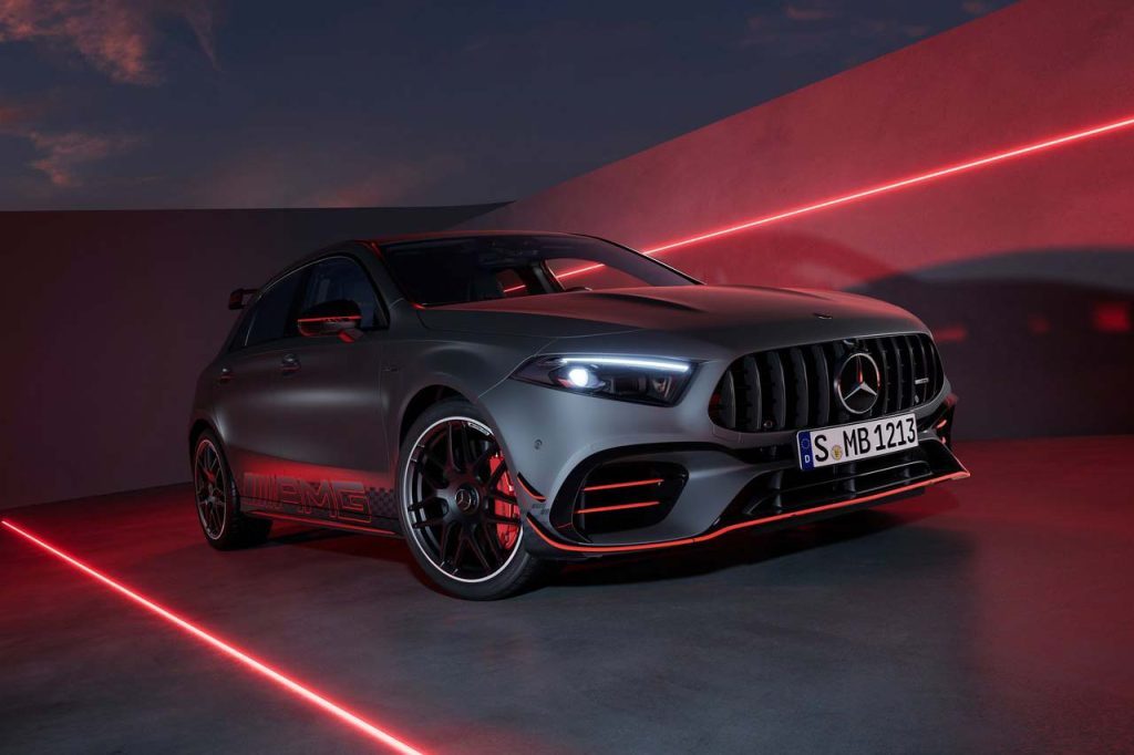 신형 'A45 S' 해치백은 벤츠 A 클래스 해치백을 기반으로 제작된 고성능 모델로 2.0리터 직렬 4기통 가솔린 터보 엔진이 특징이다.