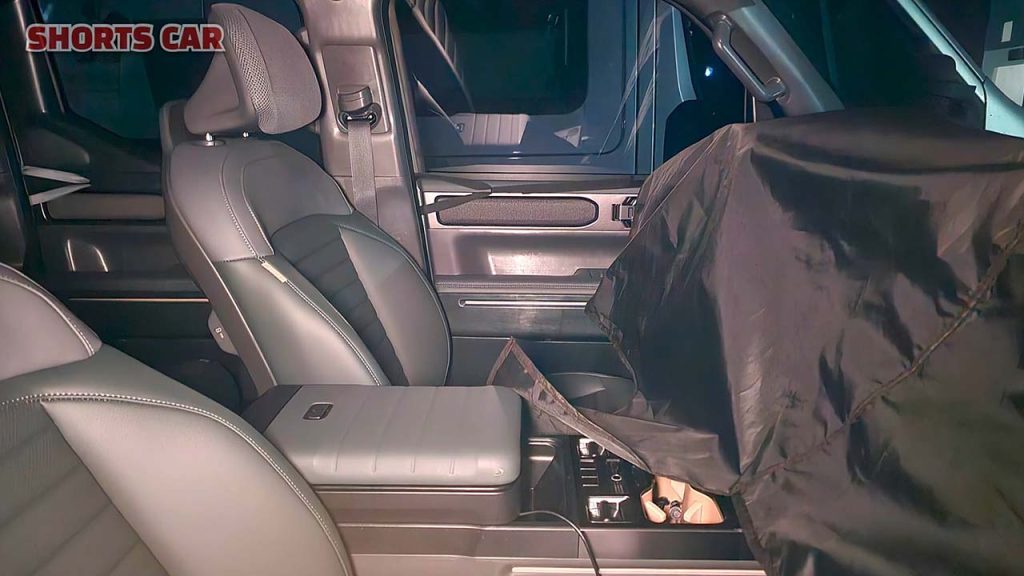 스파이샷을 통해 확인된 타스만은 1열과 2열 모두 넉넉한 공간감과 터프한 실내모습을 볼 수 있다. 특히 기존 기아 모델과 다른 독특한 디자인 포인트가 적용된 것이 눈에 띈다.