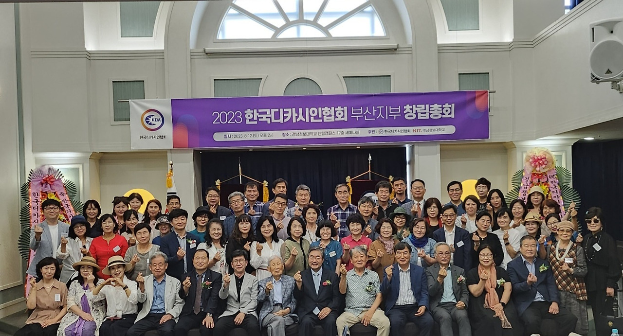 부산디카시인협회(한국디카시인협회 부산지부)가 지난 8월 12일 경남정보대학교 센텀캠퍼스 17층 세미나실에서 창립됐다. 한국디카시인협회와 경남정보대학교는 지난 7월 20일 상호 MOU를 체결한 바 있다. 1부에는 한국디카시인협회 김종회 회장(한국디지털문인협회 회장, 전 경희대 국문과 교수)의 개회사, 경남정보대학교 김대식 총장을 대신하여 김태상 부총장의 환영사, 강남주 전 부경대 총장과 양왕용 한국현대시인협회 이사장의 격려사, 남송우 전 부산문화재단 대표의 축사가 진행되었다. 아울러 지부 창립 및 인준이 동시에 이루어졌다.