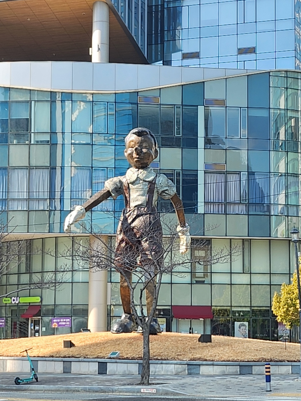 "비단잉어 코이잉어는 변신의 귀재다. 이왕이면 큰 물에서 노는 법을 선택할 수 있다면 더더욱 의미가 있다. 경남정보대학교 센텀캠퍼스의 피노키오 광장은 변신을 위한 큰 물의 시작이다. 인간이 되고자 했던 최고의 도전을 시작하는 큰 물이다. 지상 최고 수준의 인성 도전의 시작이다. 그곳으로 향한다."