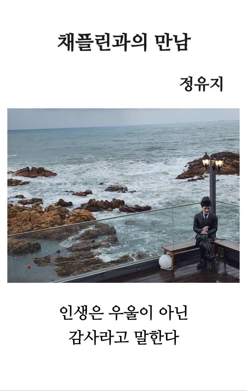 디카시조 〈채플린과의 만남〉은 ‘바다’와 ‘채플린’, 그리고 ‘감사’라는 세 가지 상징을 통해 인생의 본질을 다시 바라보게 하는 작품입니다. 또한 이 디카시조는 바다를 배경으로 인생의 고독과 예술의 따뜻한 위로가 교차하는 순간을 시각화한 작품입니다.