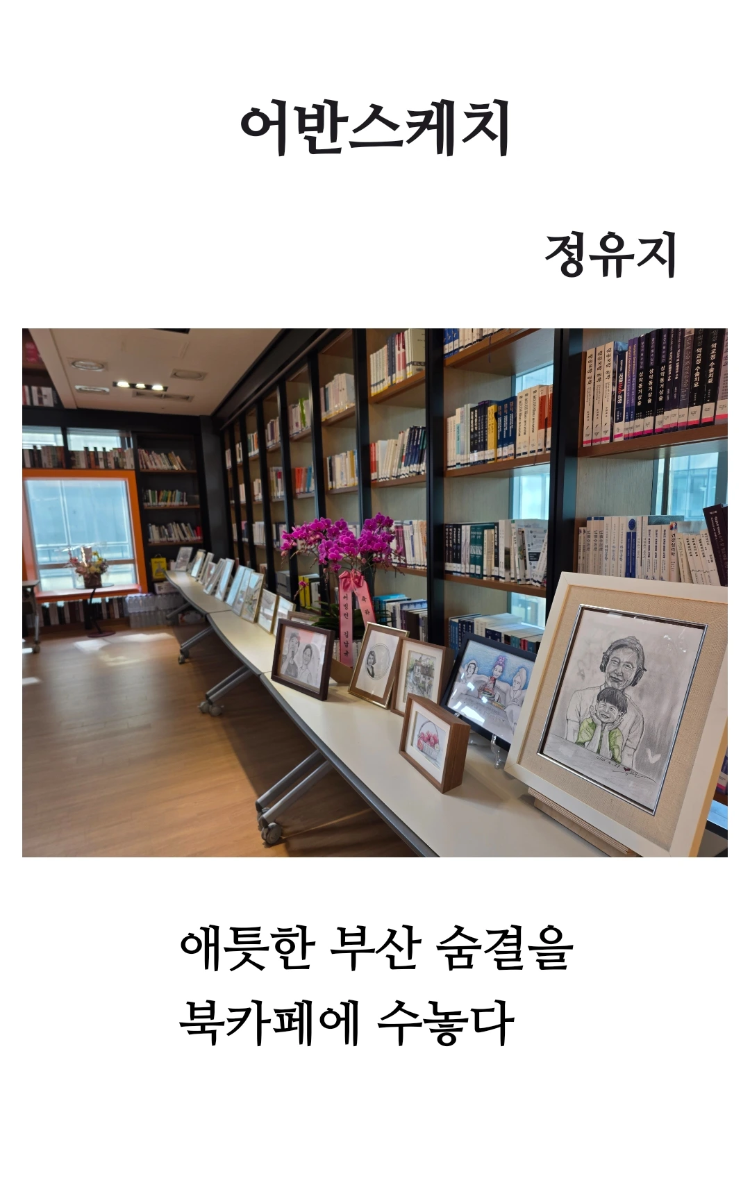 부산은 독특한 목소리, 삶의 온도와 방향을 품고 있는 문화예술의 메카입니다. 부산의 말들이 어반스케치를 통해, 북카페라는 문화 공간에서 다시 태어나 부산 사람들의 마음과 그리움을 전하고 있습니다.