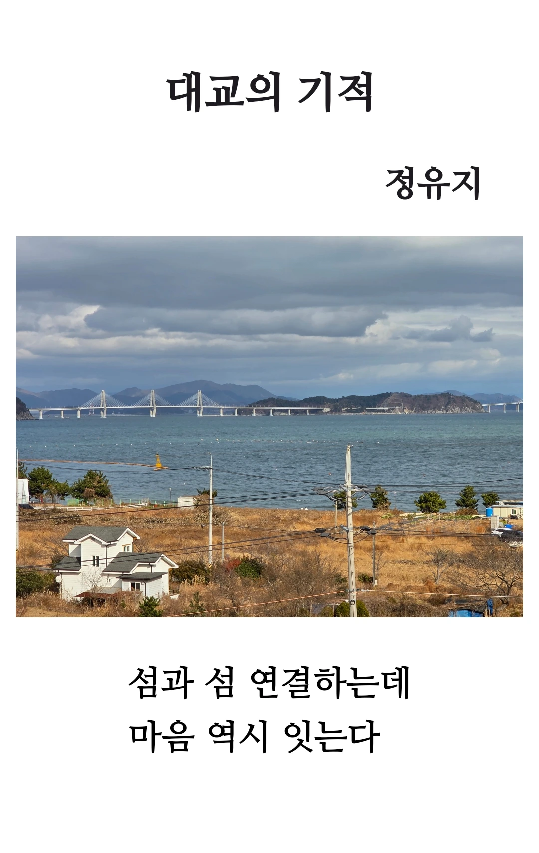 대교는 섬과 섬을 잇는 물리적 구조물이자, 그 너머의 마음을 잇는 보이지 않는 다리입니다. 물리적 거리뿐 아니라 감정과 추억, 사람과 사람의 간극을 메우는 다리로서 ‘기적’이라고 불릴 만합니다. 이것은 현대사회 속에서 소통의 중요성, 그리고 관계의 재발견을 상징합니다. 대교처럼 “연결은 외롭지 않게 하고, 잊지 않게 하며, 새로운 시작을 가능케 한다.”는 말을 품고 있는 경남정보대학교 디지털문예창작과 액티브 시니어를 응원합니다.