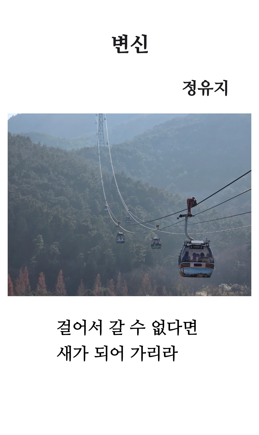 케이블카를 타고 그리운 이를 생각하면서 쓴 시인의 비망록을 읽습니다.