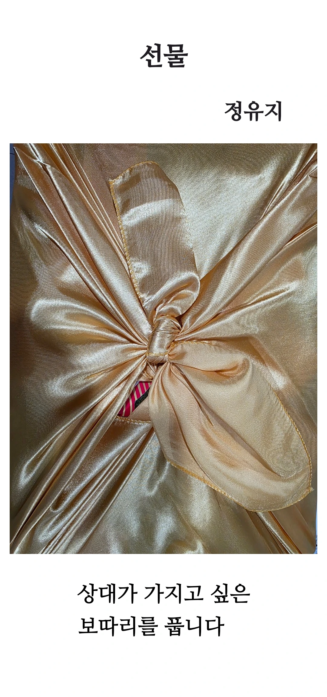 “내가 정말 원한 건 멀고 큰 것이 아니었어요. 당신이 나를 이해하고, 내 마음속 ‘보따리’를 함께 풀어주길 바랐죠. 그 무엇보다 소중한 그 마음을 선물로 받고 싶습니다."