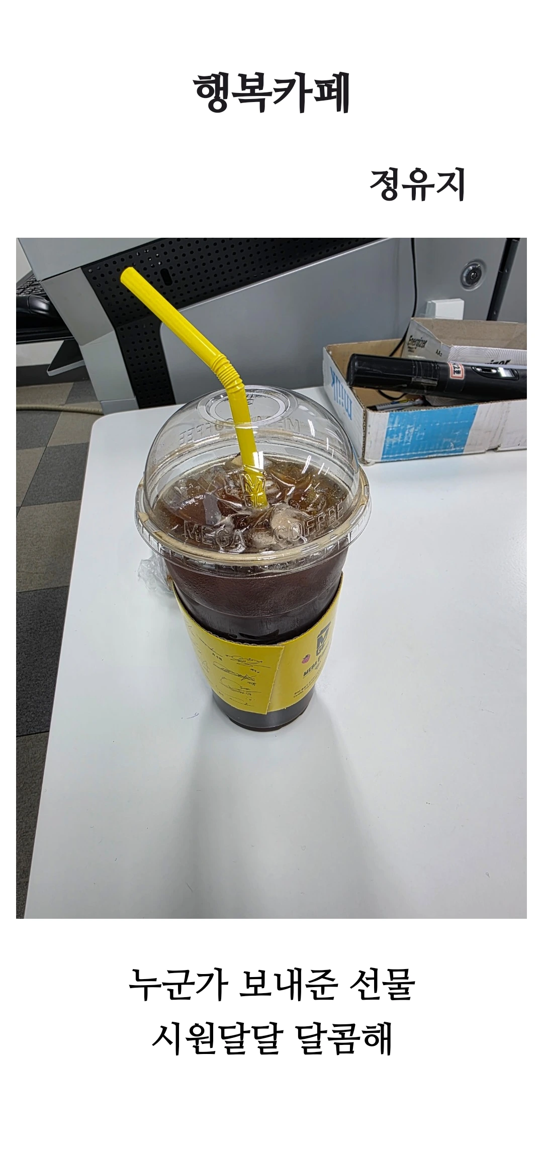 디카시 <행복카페>의 영상기호는 아이스아메리카노를 마시는 순간을 포착하며, 행복의 의미를 공유하고 있습니다 .