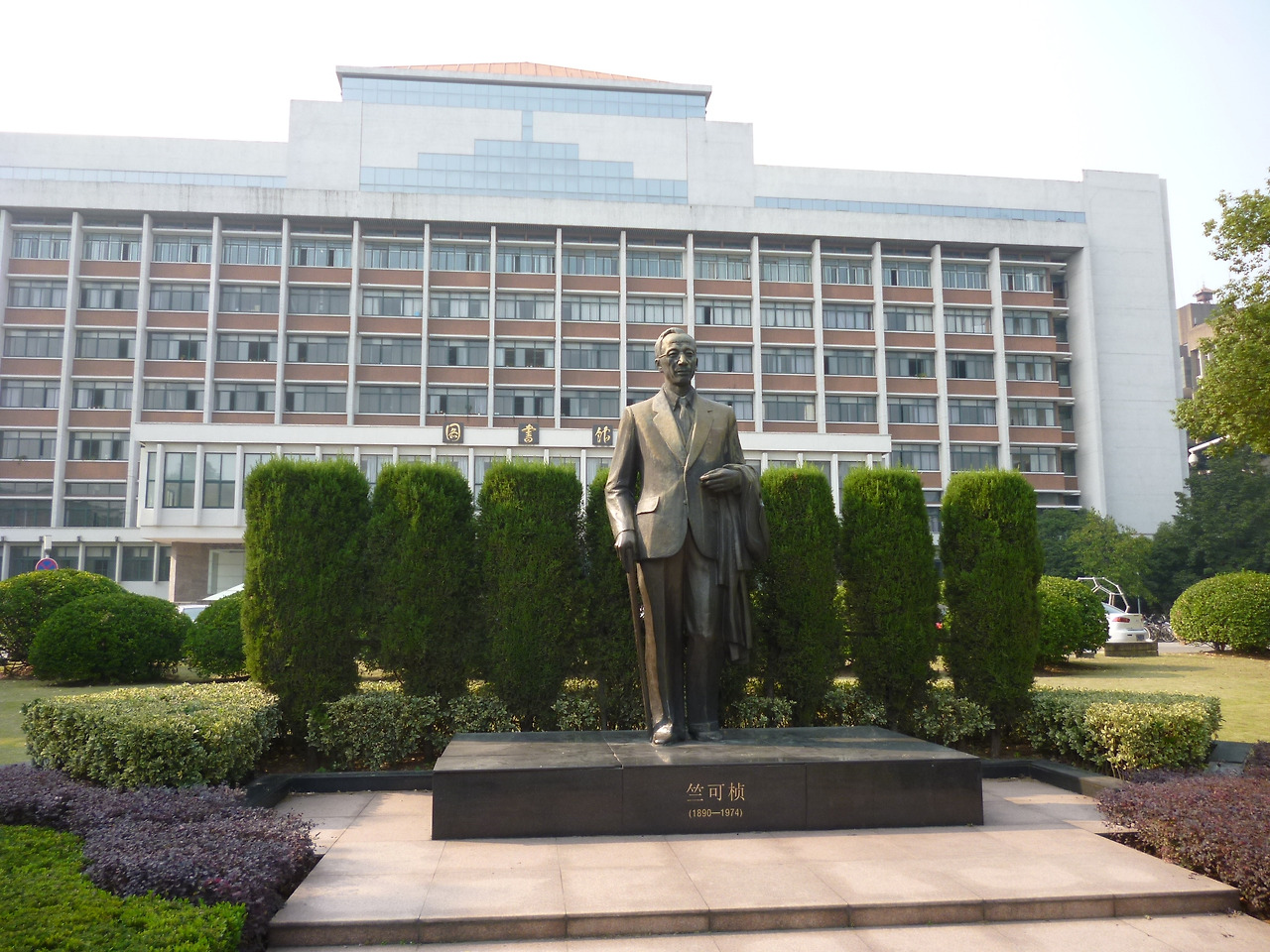 저장대학 위췐(玉泉)캠퍼스 도서관 앞 주커전 선생 동상