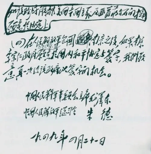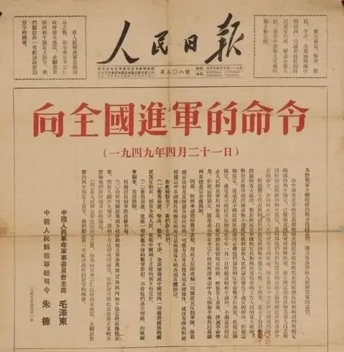 마오쩌동은 장제스의 후임으로 국민당 총통 직위에 있던 리종런으로부터 최후통첩에 대한 거부 회신을 받은 후 1949년 4월 21일에 인민해방군에게 ‘전국으로 진군 명령(向全国进军的命令)’을 내렸다. 이 명령에 따라 장강 연안 각 전략 지역에서 대기 중이던 인민해방군이 ‘장강 도하(渡河)작전’을 시작했다. ‘전국으로 진군 명령’은 중국 인민혁명군사위원회 주석 마오쩌동, 그리고 중국 인민해방군 총사령 주더의 명의로 인민해방군에게 하달했다.