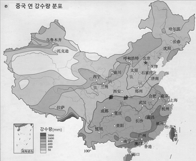 중국 연강수량 분포도
