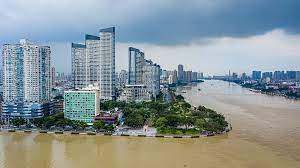 서강(西江), 북강(北江), 동강(東江) 3개 강의 물줄기가 수계를 이루고, 남중국해로 흘러들어 간다.