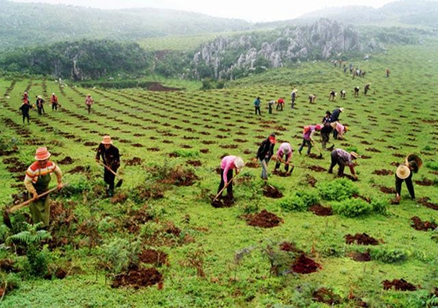 1995~2000년 사이 서부 지역에서 증가된 농지 면적 중 초지 개간으로 증가된 농경지가 약 70%, 삼림 개간으로 증가된 농경지가 약 22%를 차지하고 있다. 그러나 이렇게 개간된 농토는 종합적인 연관시설의 부재, 불완전한 삼림 체계, 부족한 관개 조건, 엉성하고 조방적인 농토 관리 등으로 인해 개간 후 2~3년 후에 다시 황무지가 되고, 그러면 다시 다른 곳에 새로운 농지를 개간해야 한다. 그 결과 개간하는 면적만큼 생태 훼손과 사막화가 진행되어 장기적으로는 농업·임업·목축업 모두 피해를 입게 된다.