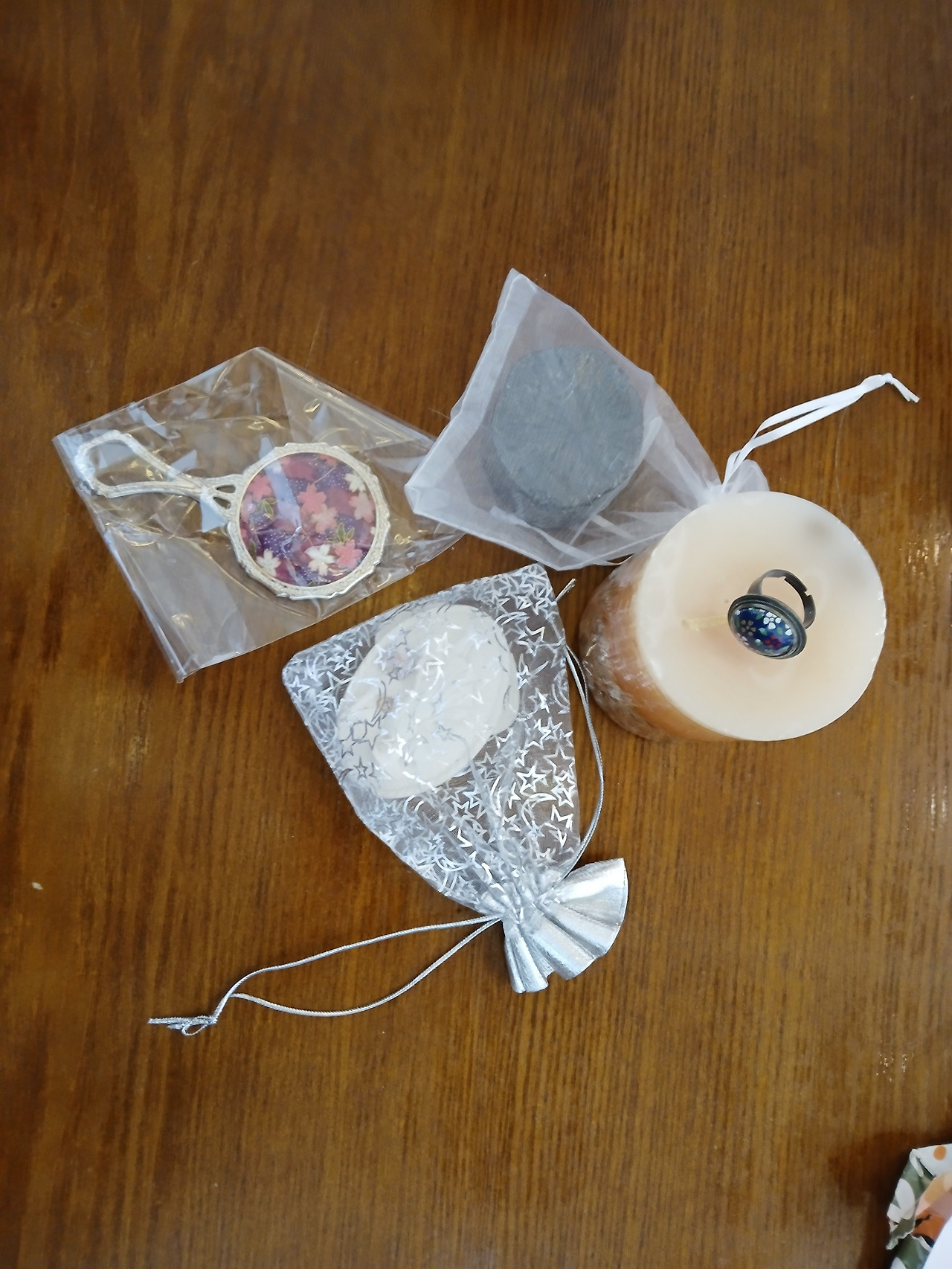 벚꽃길을 걷고 우리는 핸즈커피로 옮겨 못다 한 이야기들을 나누었지요. 놀라운 것은 하빛선 작가님이 대전에서 그 유명한 성심당 빵을 사 오신 겁니다. 네 개씩 나누어 담아 집으로 가져갔지요. 성심당 빵을 먹은 지 30년도 더 지난 것 같은데 너무 맛있더라고요. 그 세심한 배려에 감사한 시간이었습니다. 그건 시작에 불과했지요. 우리에겐 선물의 여왕 박영선 작가님이 또 기다리고 있었답니다. 매번 만날 때마다 손수 만든 작품을 가져오셨는데 이번엔 이벤트까지 준비해 오셨더라고요. 만든 선물을 하나씩 정성껏 포장해 오셨더군요. 제비뽑기까지 준비해 오시느라 볼펜에 종이까지 준비하셨더군요. 선물이 다양해서 뽑는 재미도 있었답니다. 향을 좋아하는 저는 방향제를 뽑아서 더 좋았답니다.