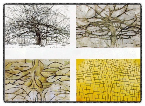 몬드리안은 나무를 줄기로, 줄기를 선으로, 선을 수직선과 수평선으로 단순화해 나갔다