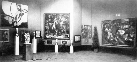살롱 도똔느에서 열린 전시회, 1912. 피카비아, 쿠프카, 모딜리아니 등 입체파적 스타일의 작품들이 많이 보인다.