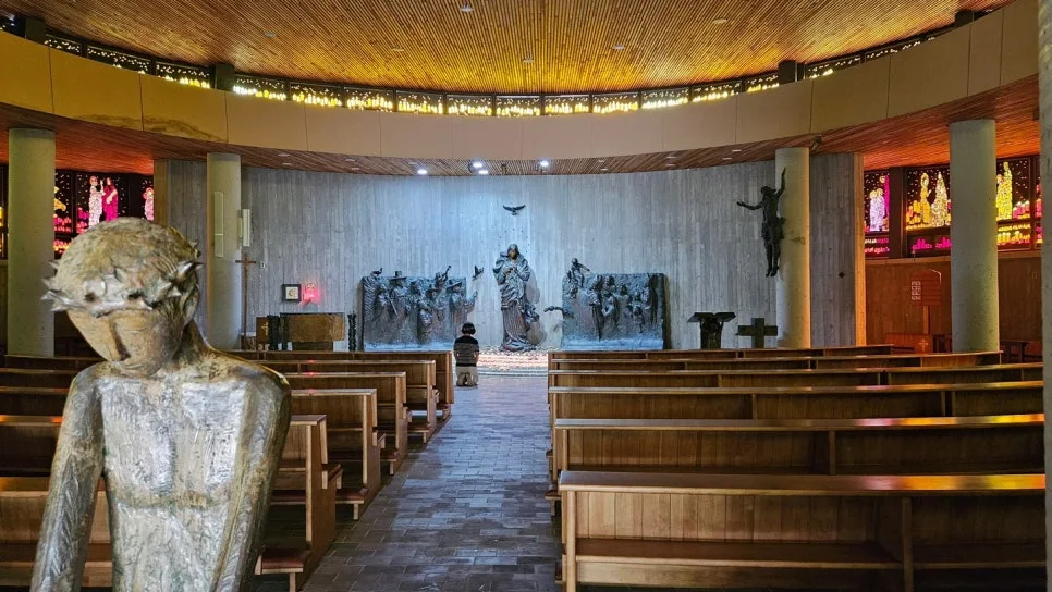 성지 입구에 들어서자 '나는 길이요 진리요 생명이다'라는 말씀이 새겨진 문이 맞이한다. 예수님의 발자국을 형상화한 작품이 새겨진 기둥 사이로 지나며, 이곳에 담긴 깊은 의미를 되새겨본다. 고요한 분위기 속에 발걸음도 조심스럽다. 마치 성서에서 예수님이 바닷물을 잠재우시던 그 순간처럼, 성스러운 침묵이 온 몸을 감쌌다.