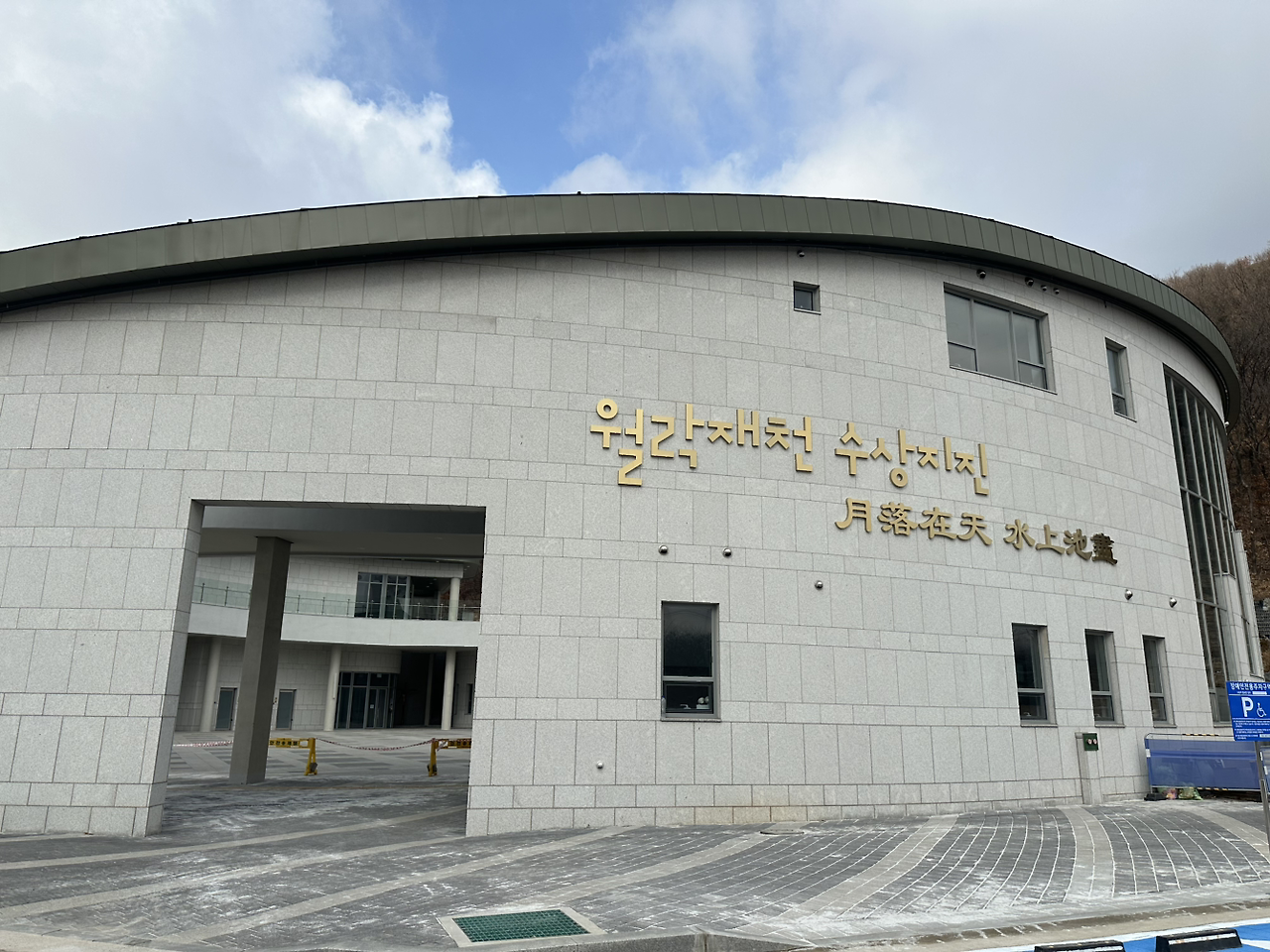 주자창에 도착하니 원형의 건물에 월락재천(月落在天) 수상지진(水上池盡이라는 문구가 있다. 눈뜬장님처럼 무슨 뜻인지 알 수가 없다.