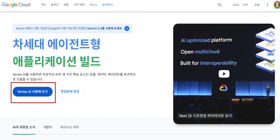 세 번째 방법은 구글 클라우드를 이용하는 것이다. 구글 클라우드 신규가입하면 40만원 상당의 무료 크레딧을 제공해주니 마음 편하게 Veo3를 이용해 영상을 만들 수 있다.