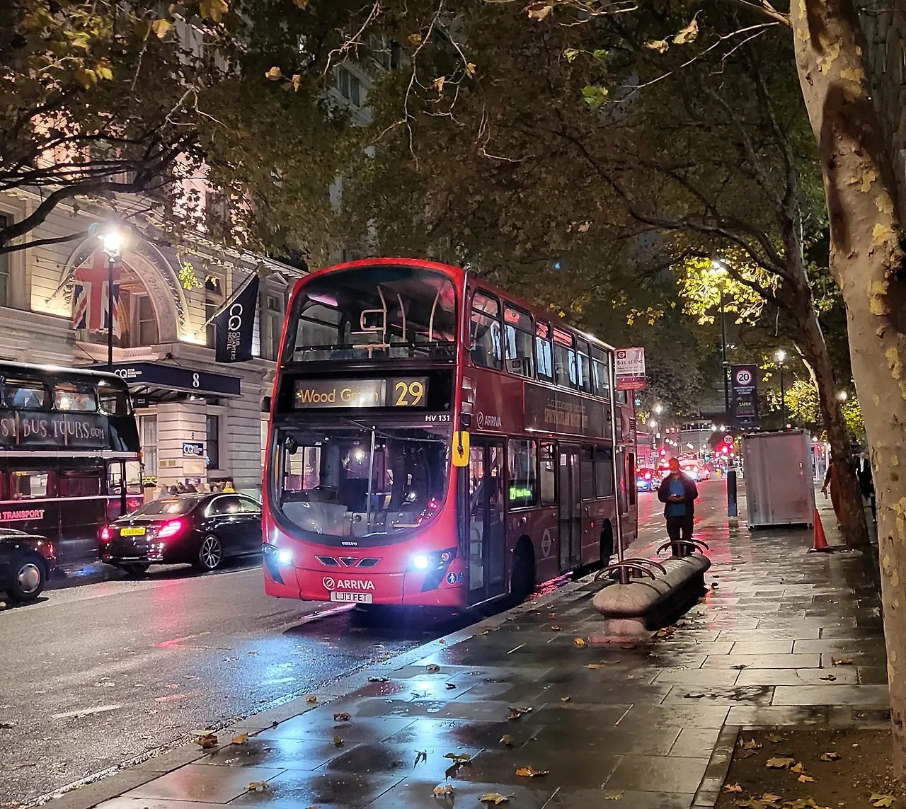 14시간의 비행을 마치고, 런던 히드로 국제공항(Heathrow International Airport)에 도착했다. 택시를 타고 트라팔가 광장 근처 호텔(citadines trafalgar square)로 이동하여 짐을 풀고, 곧바로 호텔에서 나와 비 내리는 런던의 밤을 감상했다. 비 오는 밤에 빅벤과 런던아이를 보는 것만으로도 설레어 드디어 런던에 도착했다고 느꼈다. 비바람이 불어도 템즈강에서 커플들이 벤치에 앉아 데이트를 즐기는 모습도 무척 인상적이었다.