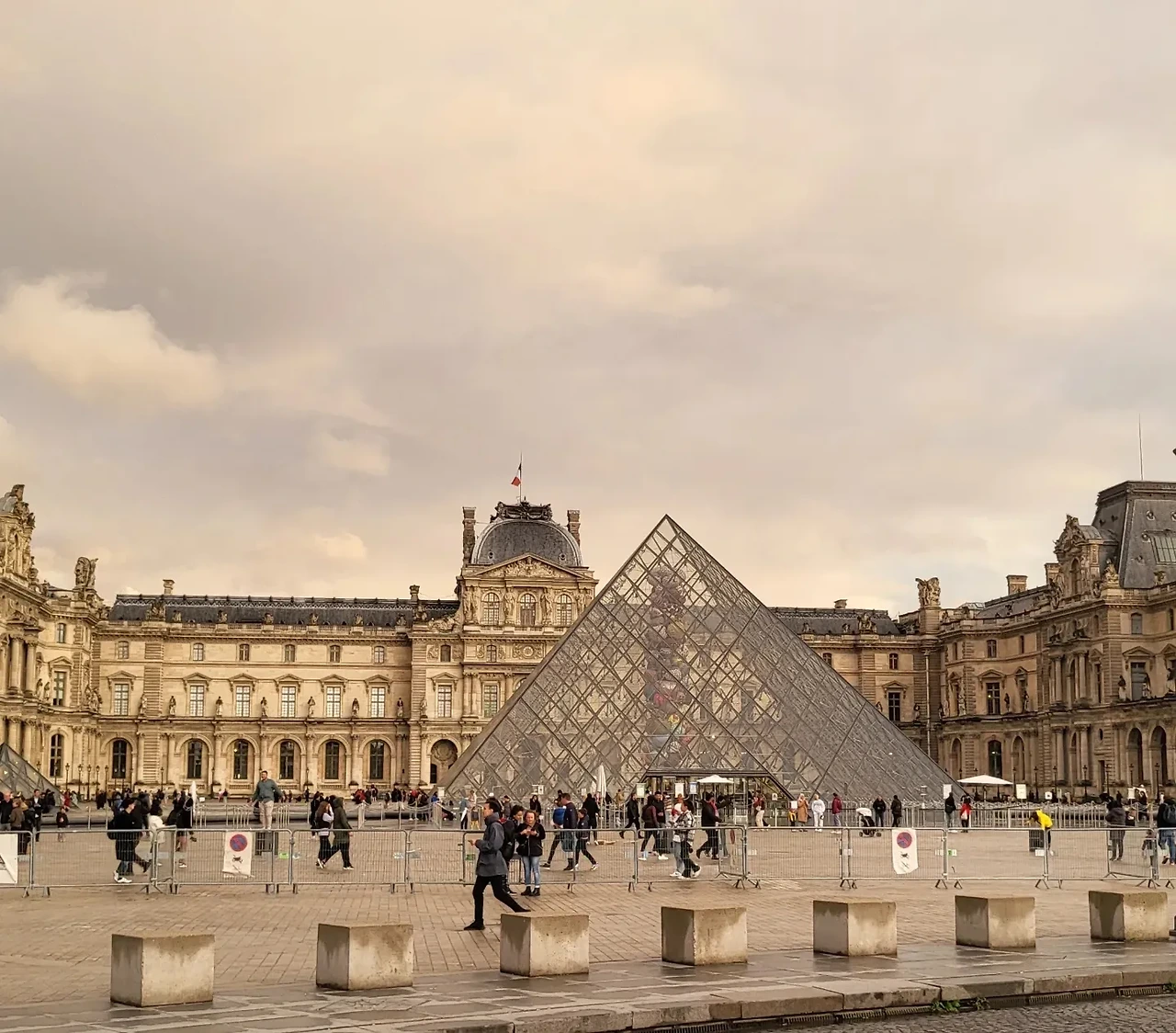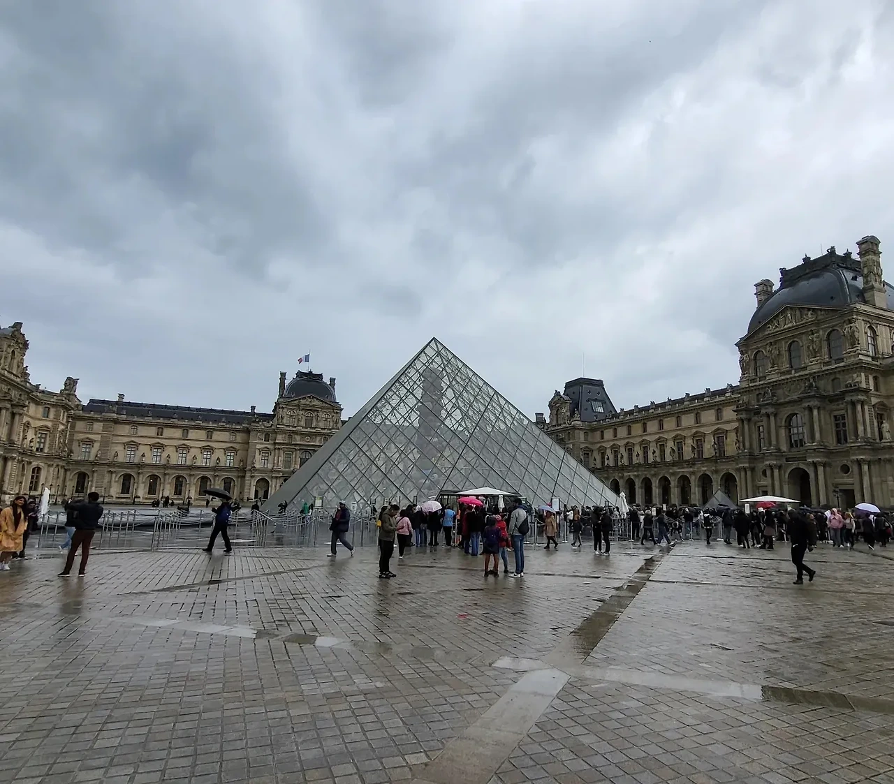 호텔에서 체크인을 마치고 파리 시내를 걸으며 파리지앵의 감성을 느껴보았다. 센 강을 따라 걷다 보니 루브르 박물관이 보였다. 첫날부터 비가 내리는 날씨에 루브르 박물관(Musée du Louvre)부터 둘러보기로 결정했고, 1시간이나 비 맞으며 대기한 끝에 루브르 피라미드를 통해 박물관 내부로 들어갈 수 있었다.