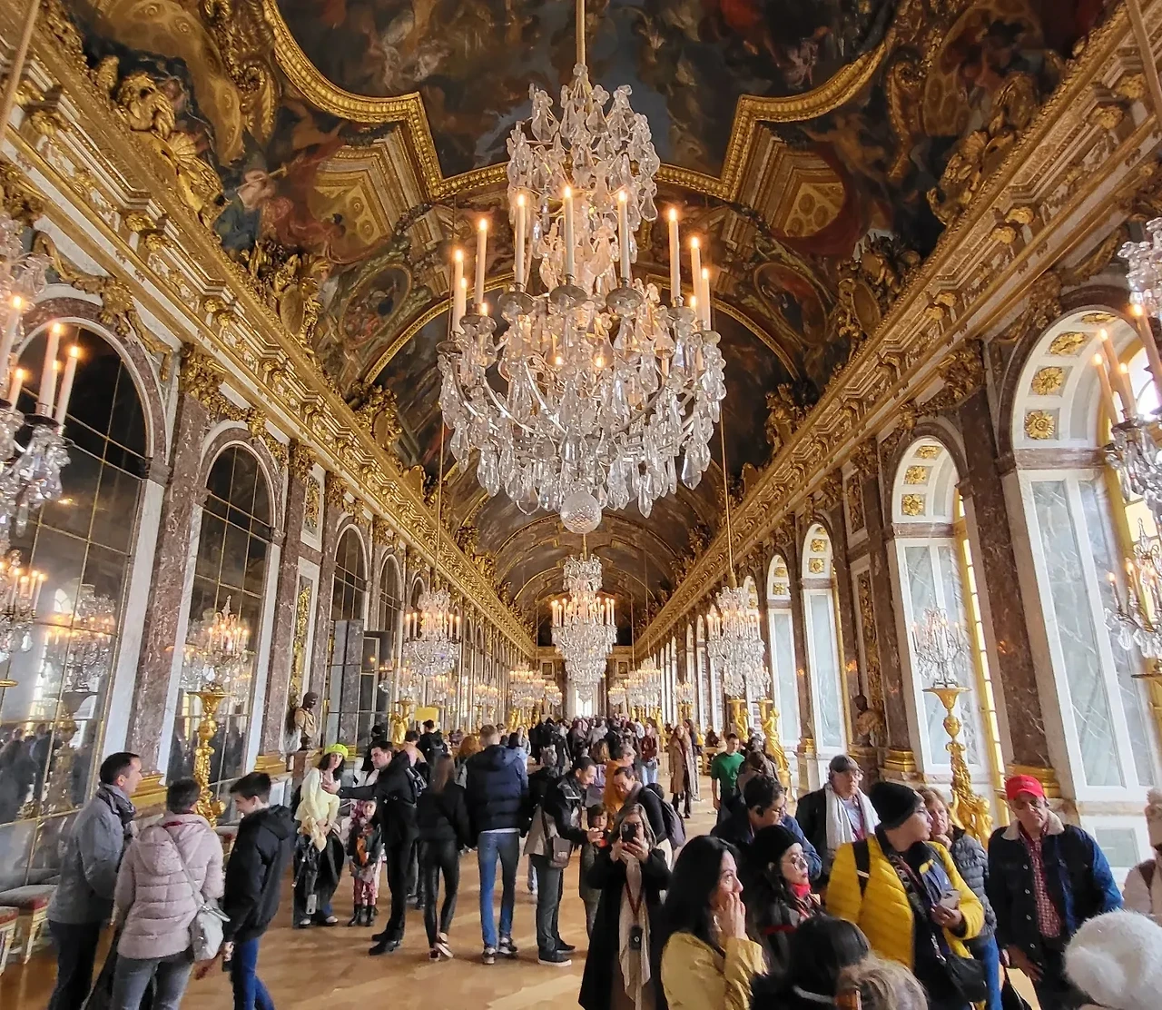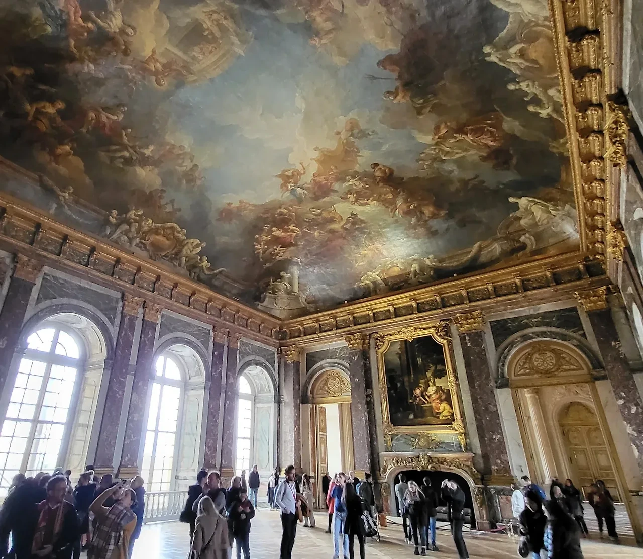 베르사유 궁전에 들어가 예배당, 헤라클레스의 방, 비너스의 방, 머큐리의 방을 차례로 감상했고, 곧이어 절대왕정의 상징이자 화려함의 절정이라 할 수 있는 거울의 방을 둘러보았다. 사진이나 영상으로 수백 번 넘게 보았던 장소였지만, 처음 거울의 방이 눈앞에 나타낼 때의 웅장함과 화려함은 말로 표현하기 어려울 정도였다. 거울의 방을 통해 왕비의 아파트로 이동하여 왕비의 침실도 둘러보았다.