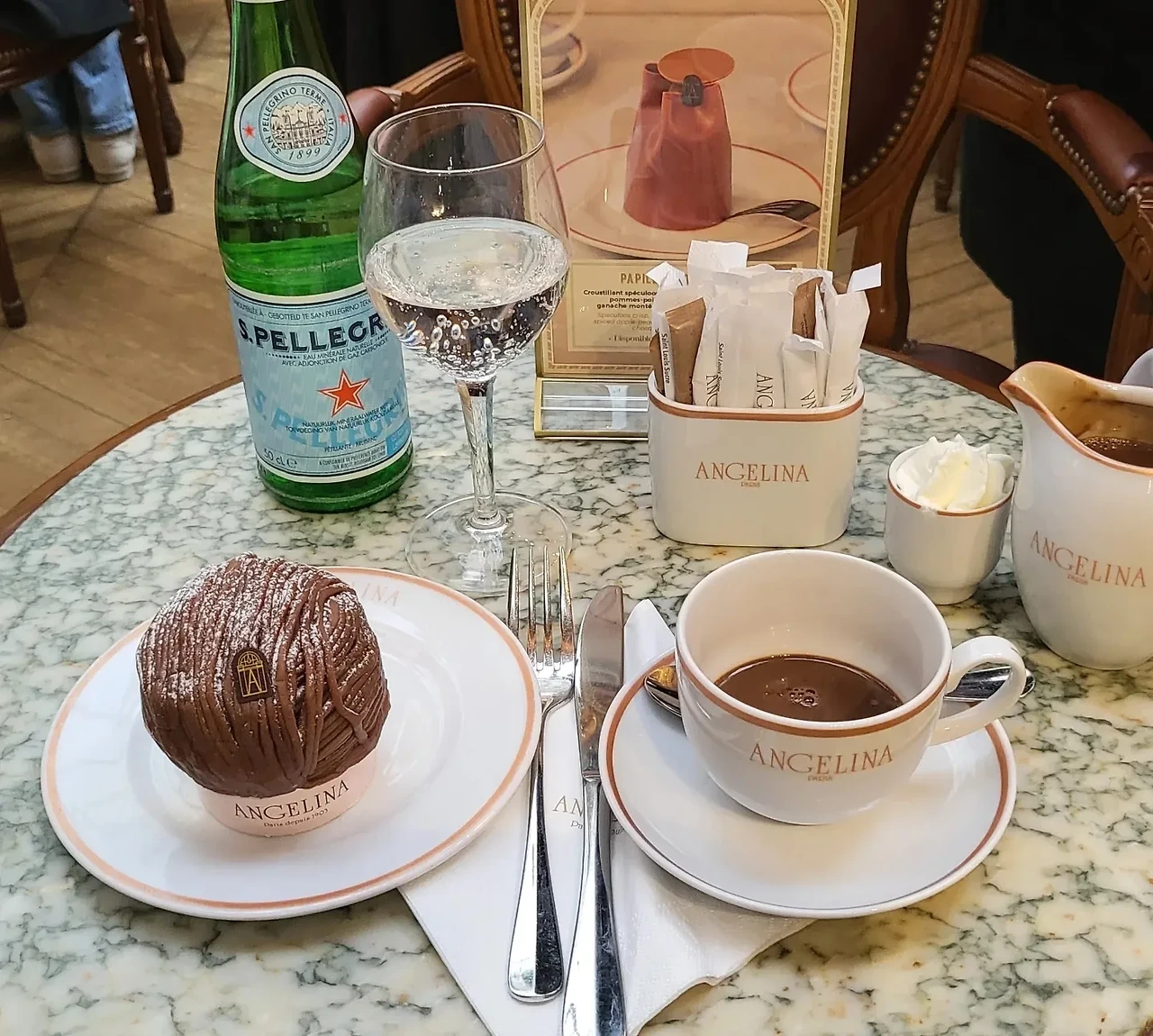 1시간을 넘는 기다림 끝에 안젤리나 카페에 들어갈 수 있었는데, 코코 샤넬(Coco Chanel)이 좋아했다던 몽블랑과 핫초코를 맛보았다. 샤이요 궁까지 걸어가면서 에펠탑을 바라보며 커피 한잔 마시고, 파리여행을 마치는 마지막 순간까지 에펠탑을 눈에 담았다.
