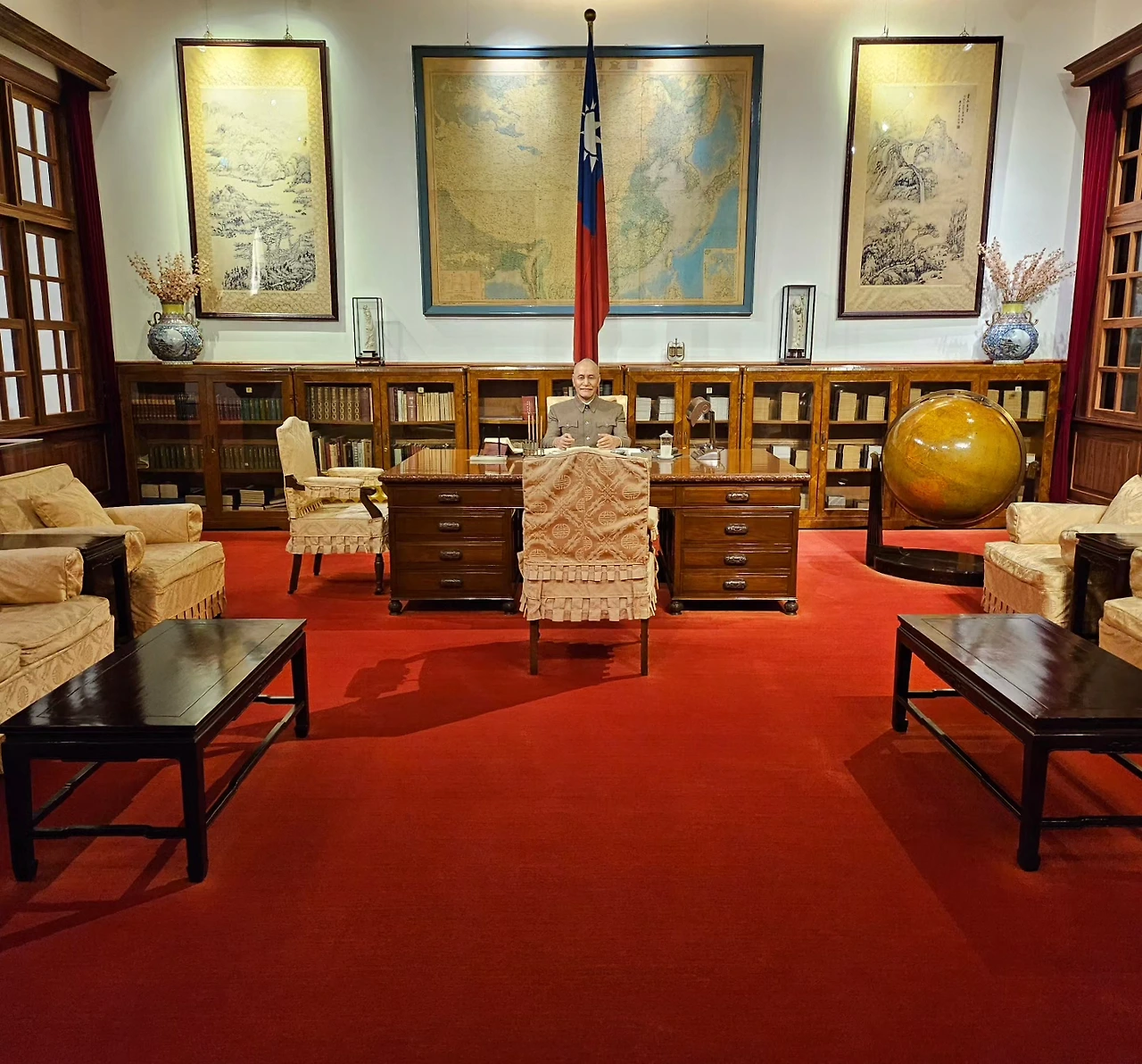 중정기념당 앞으로는 25만㎡ 면적의 자유광장이자리 잡고 있었다. 타이베이 시내 한복판에 한 사람을 기념하기 위한 기념당과 광장이 있다는 게 신기했다. 대만에서도 장제스에 대한 여러 평가가 있다는데, 어찌 됐든 오늘날 대만을 상징하고 그 정체성을 만들어낸 인물이라는 점은 분명해 보였다. 자유광장 양옆에는 고전적 건축물인 국립극장과 콘서트홀이 세워져 있는데, 동양문화의 정통을 나름대로 계승하고 있다는 자부심이 느껴졌다. 중정기념당 건물 1층에 위치한 전시실도 둘러보았다. 장제스의 집무실, 유품과 기념품, 의전용 차량 등도 인상적이었다.