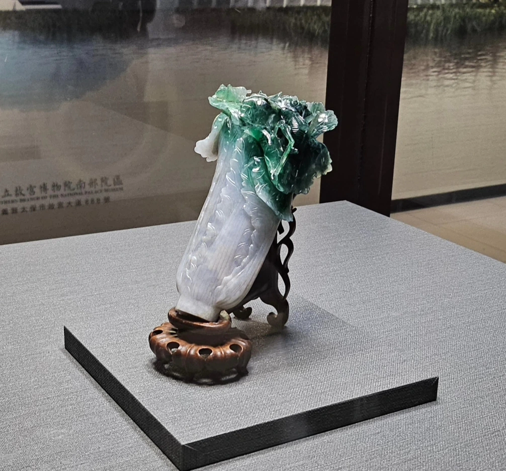 고궁박물원에서 가장 인기 있는 유물은 옥배추(취옥백채)였다. 19세기 청나라 말 왕비의 혼수품으로, 자연 그대로의 옥을 이용하여배추모양 한 겹 한 겹을 디테일하게 표현해 낸 작품이었다. 배춧잎에는 여치와 메뚜기가 조각되어 있는데, 부부가 밤마다 행복하라는 뜻이 담겨있다고 한다. 시그니처 유물치고는 배추의 크기가 생각보다 작았는데, 왕족의 혼수품이라면 실제 배추 사이즈는 되어야 하는 것 아닌가 하는 생각이 들었다.