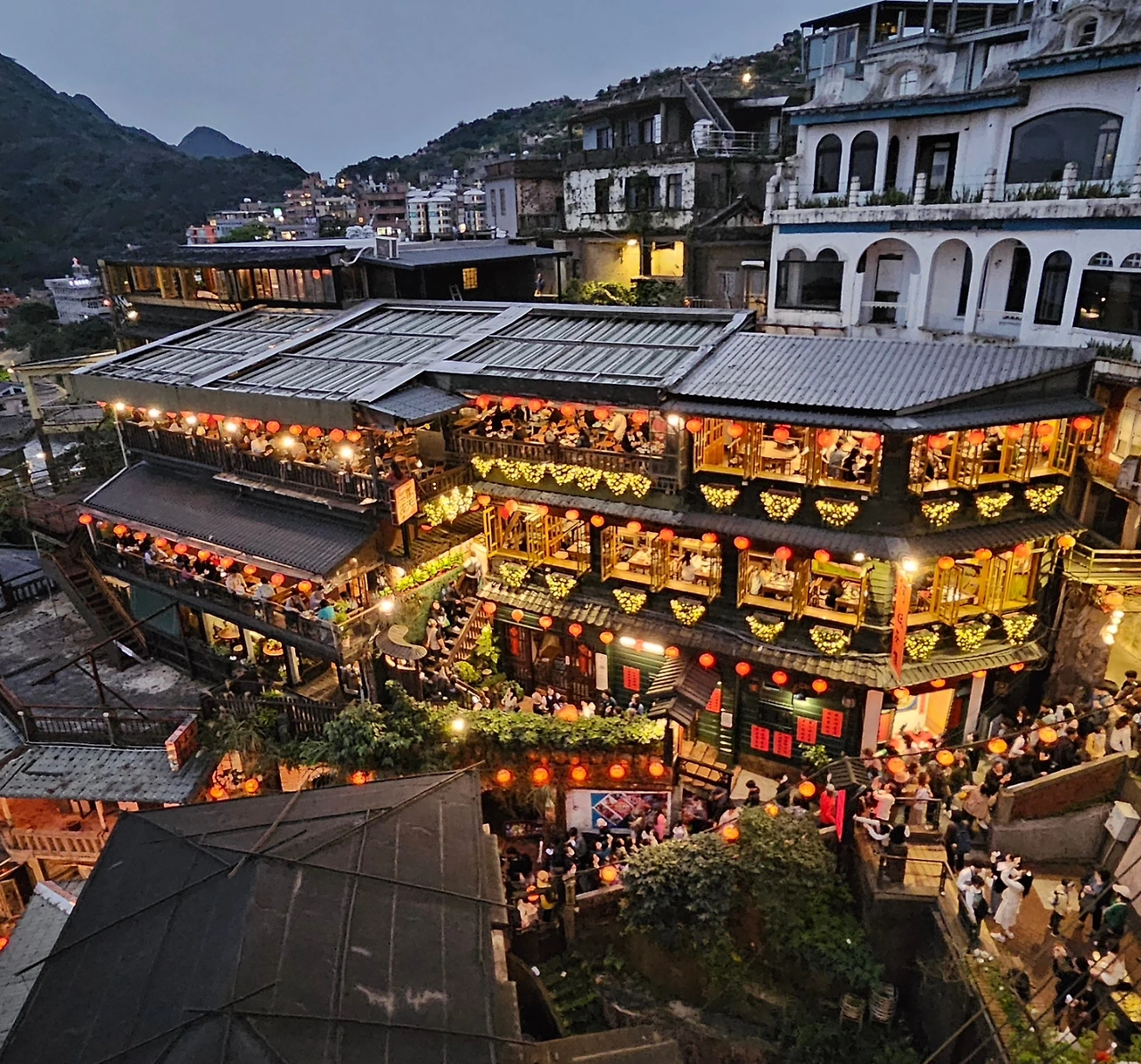 지우펀에서도 가장 유명한 곳은 바로 아메이차루 찻집이다. 센과 치히로의 행방불명의 모티브가 된 장소로도 유명한데(※ 실제 감독은 지우펀에 와본 적이 없다고 밝혔다), 그 주변에는 발 디딜 틈이 없을 정도로 사람들로 가득했다. 최근에는 아메이차루보다 그 반대편에서 아메이차루를내려다보는 곳이 핫플이 되었다고 한다. 반대편 찻집에서 노을과 야경에 어우러진찻집과 홍등을 눈에 담고 사진도 남겼다.