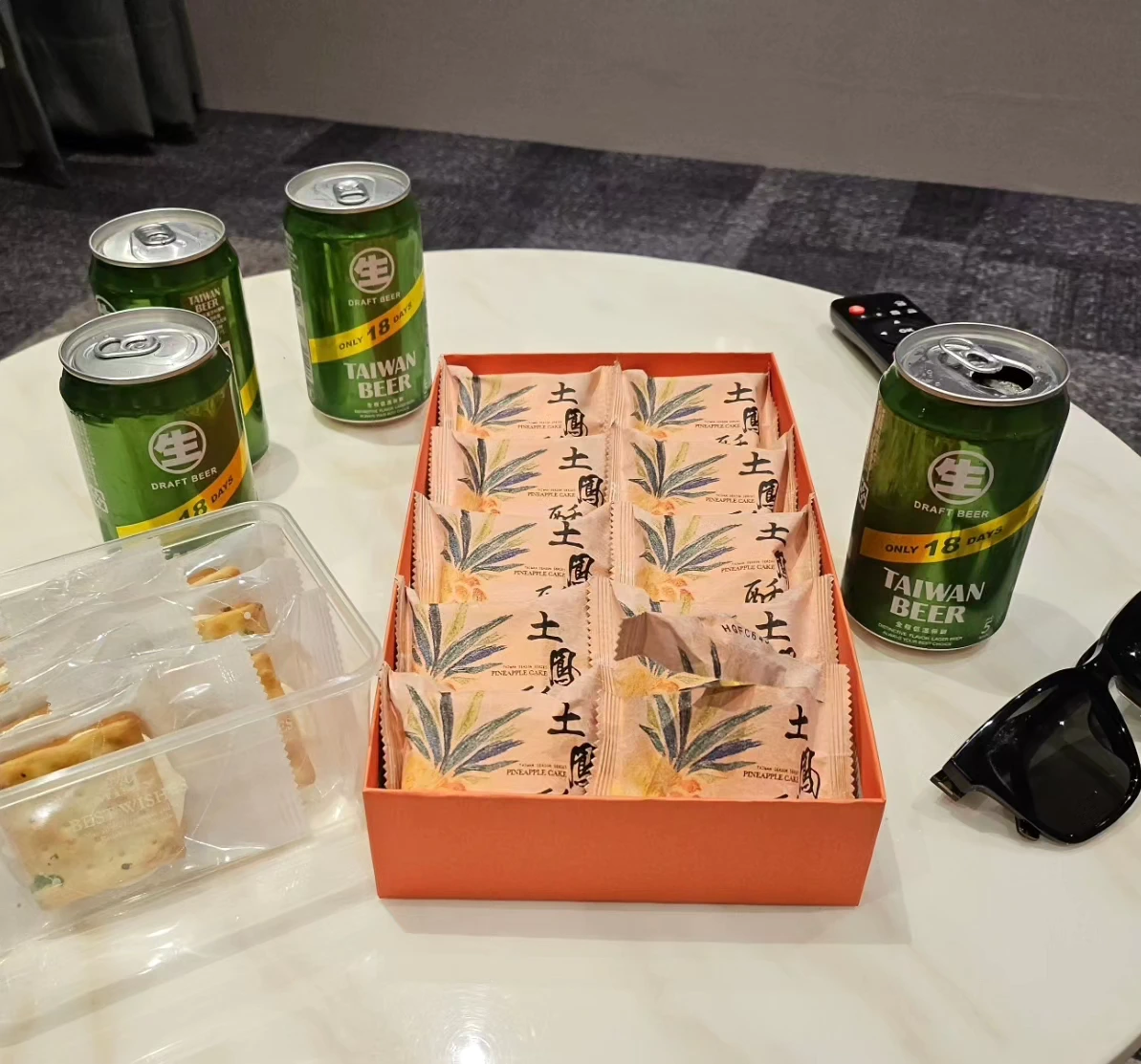 호텔로 돌아와 지우펀에서 사 온 펑리수와 누가크래커를 18맥주와 함께 먹었다.누가크래커를 처음 먹어보았는데, 현지인 맛집에서 구매해서 그런지 단짠의 조화가 일품이었다. 18맥주는 18일 동안만유통되는 유통기간 한정판 맥주로, 18일 동안 판매되지 못하면 공장으로 회수된다고 한다. 유통기한이 짧은 편이라 대만 현지에서만 먹을 수 있었다. 실제로 마셔보니 생맥주처럼 풍미가 좋고 탄산도 살아있는 느낌이었다. 대만의 맥주와 간식으로 보람찬 하루를 마무리했다.