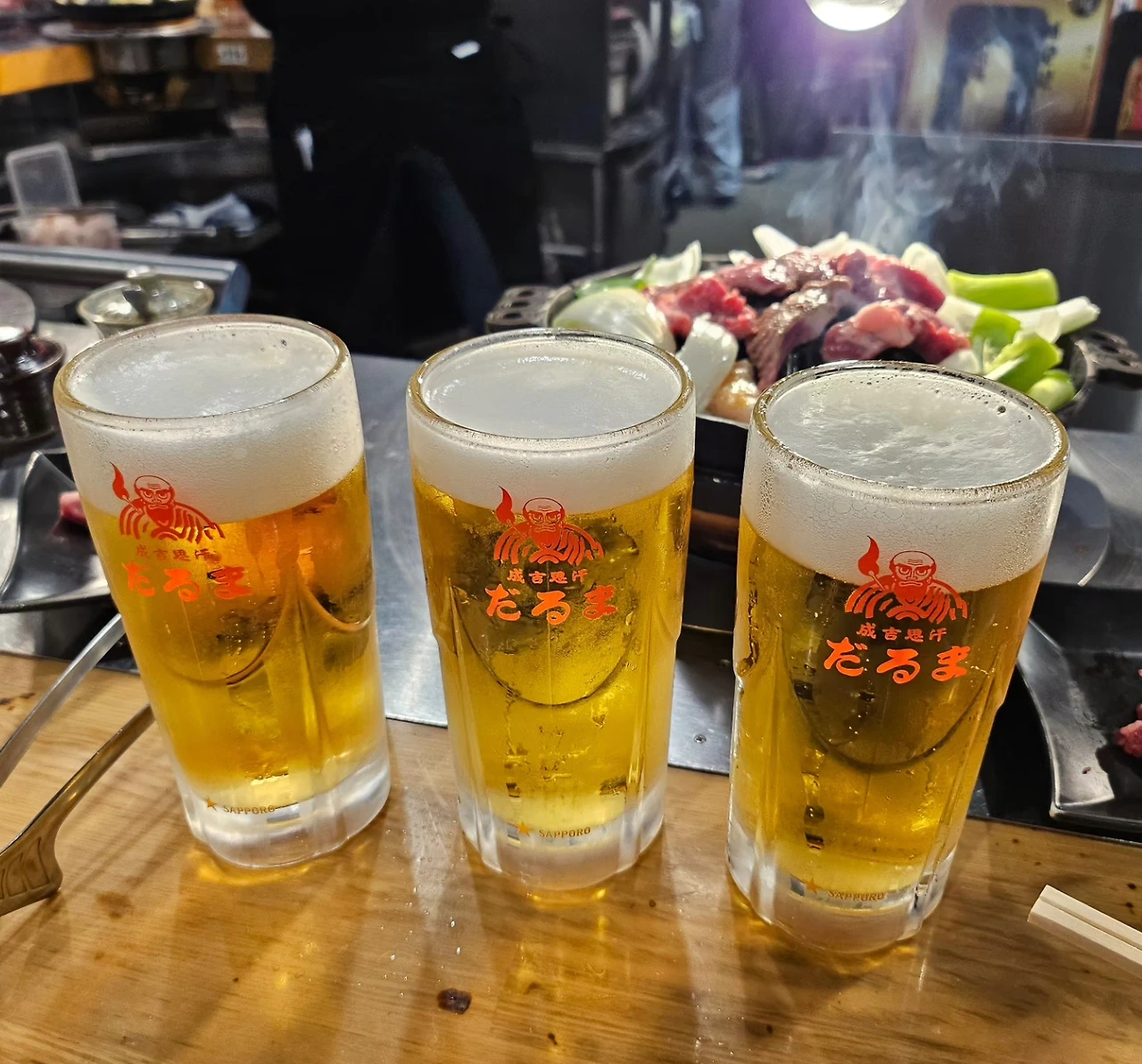 하루 종일 힘든 패키지 일정을 마치고, 일몰 후에는 더욱 힘든 자유여행을 시작했다. 트래블로지(Travelodge) 호텔 앞 삿포로 스스키노 맛집 다루마 5.5점에서 무려 1시간 50분의 오랜 기다림 끝에 드디어 징기스칸 양고기를 맛보았다.